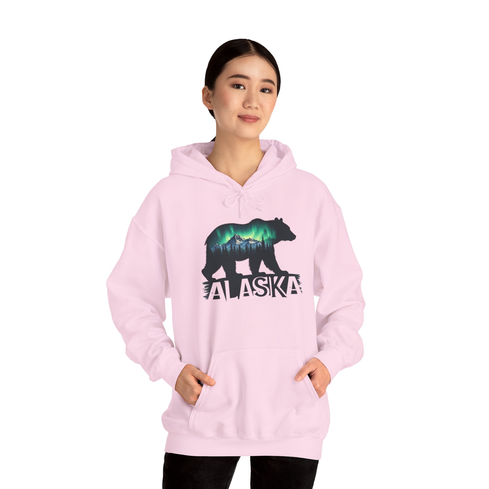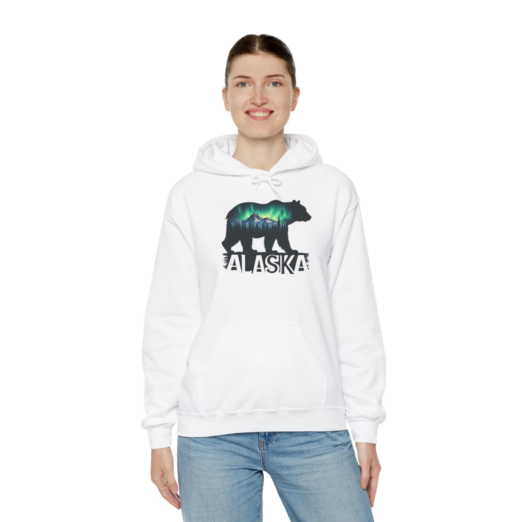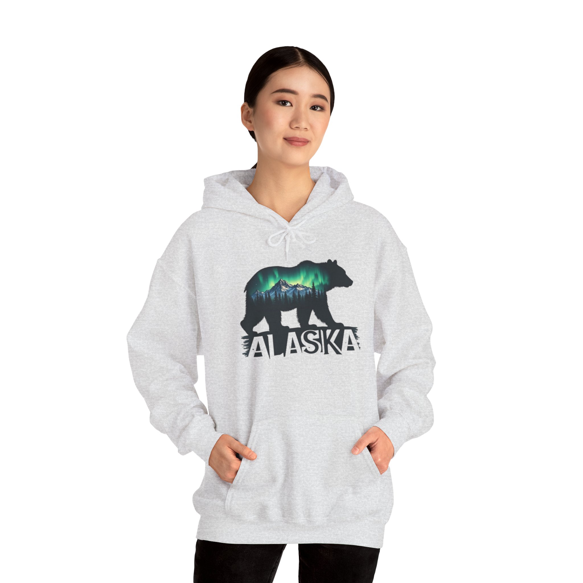 Stay warm and cozy in this beautiful Alaska hoodie featuring a bear and the northern lights. Perfect for nature lovers and anyone who enjoys unique and eye-catching designs. This hoodie is ideal for chilly weather and outdoor adventures, and it makes a great gift for Christmas, birthdays, or any special occasion.