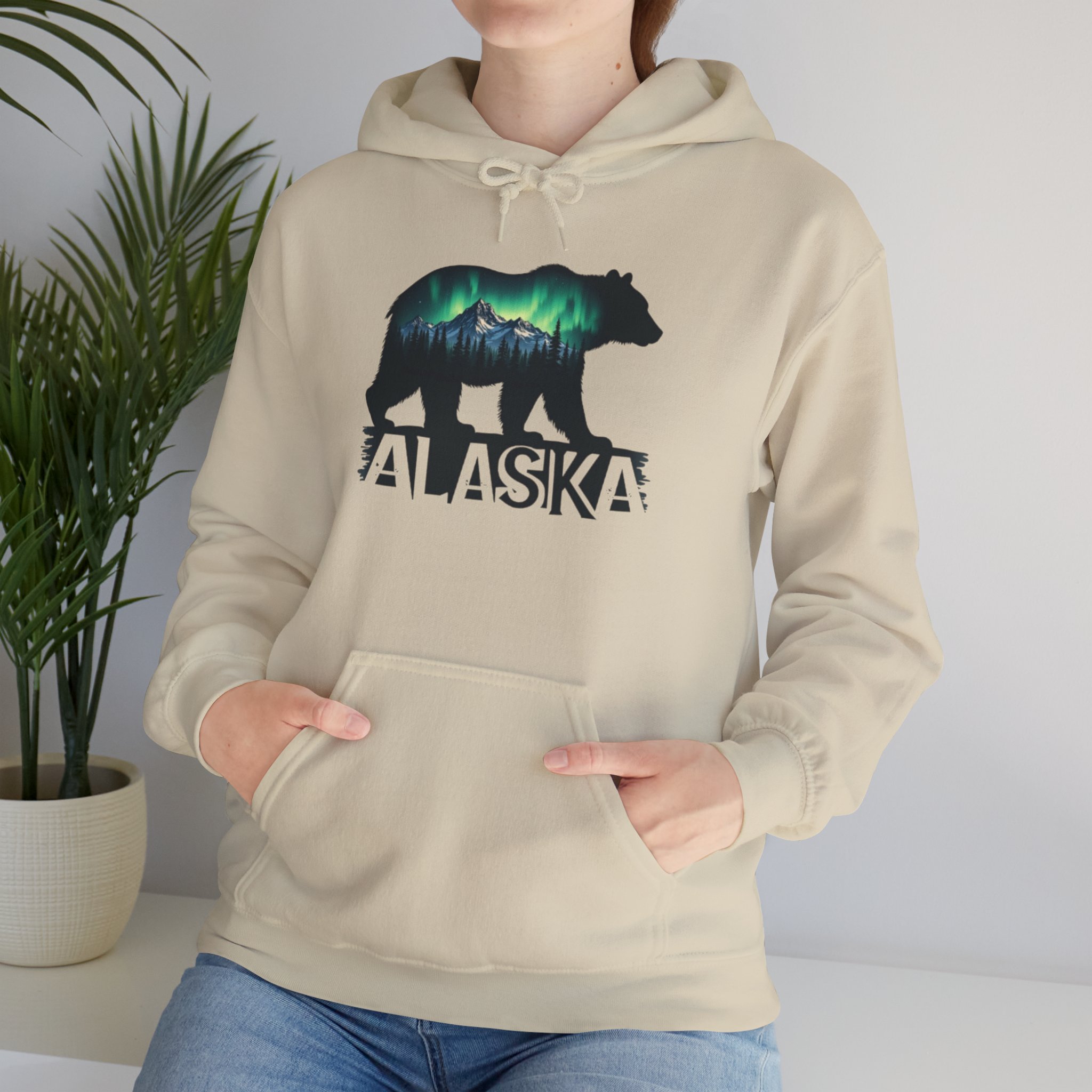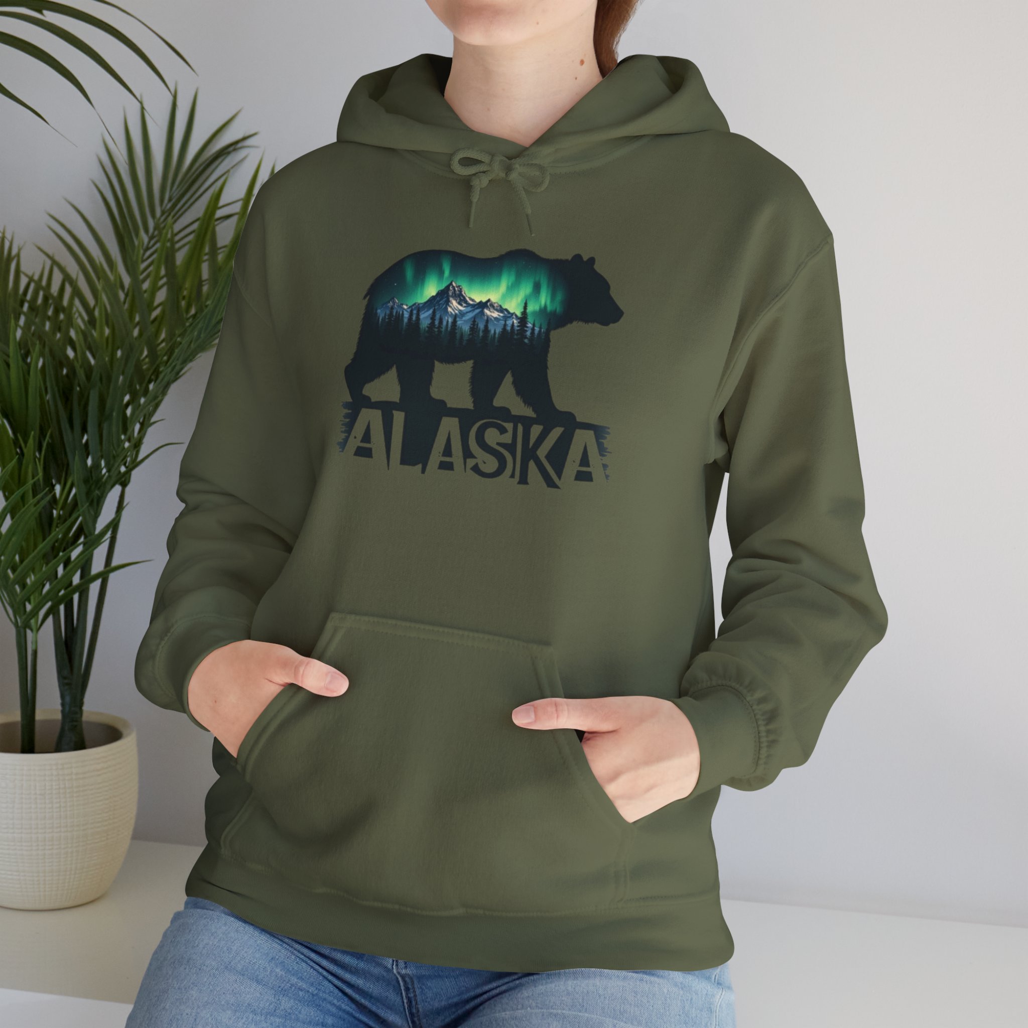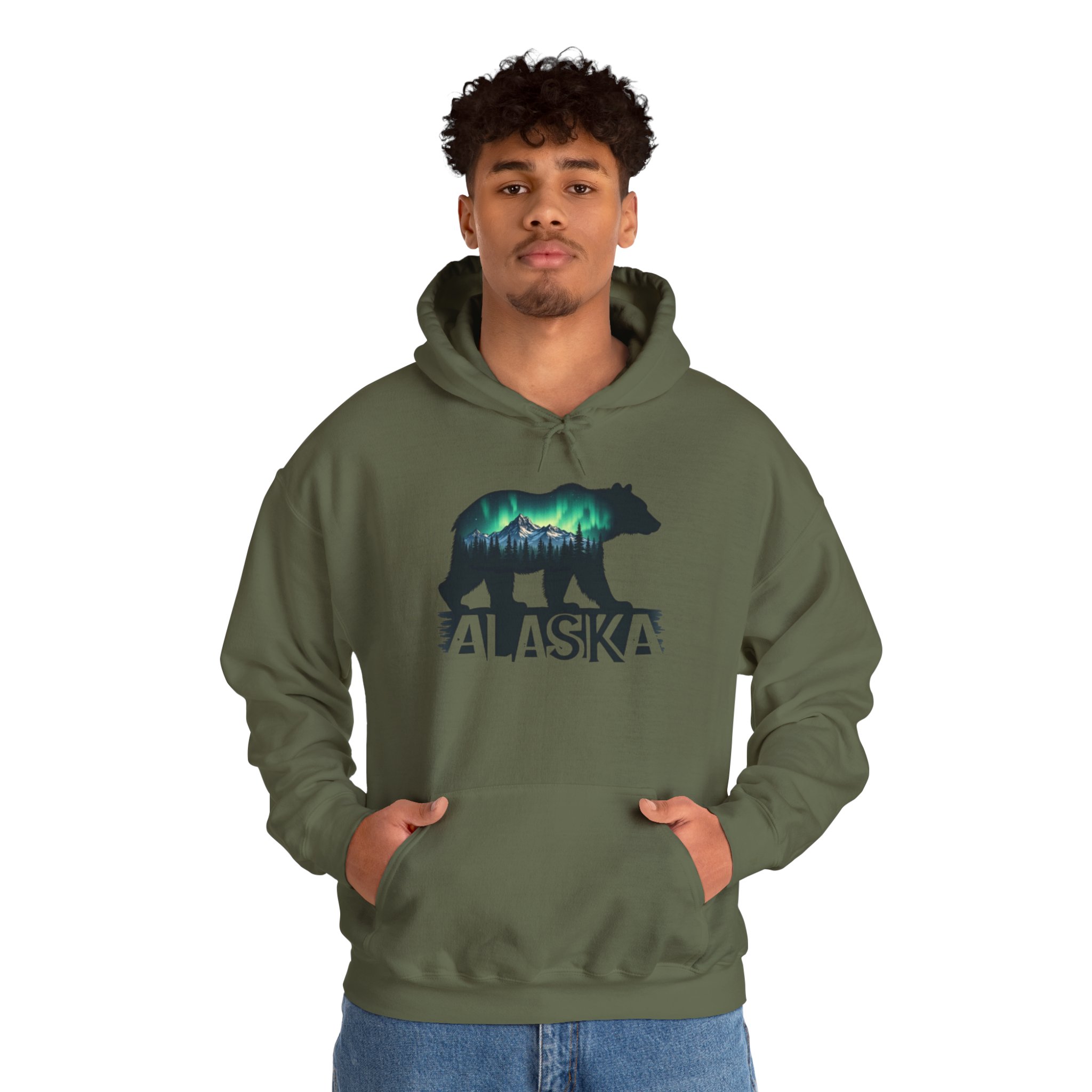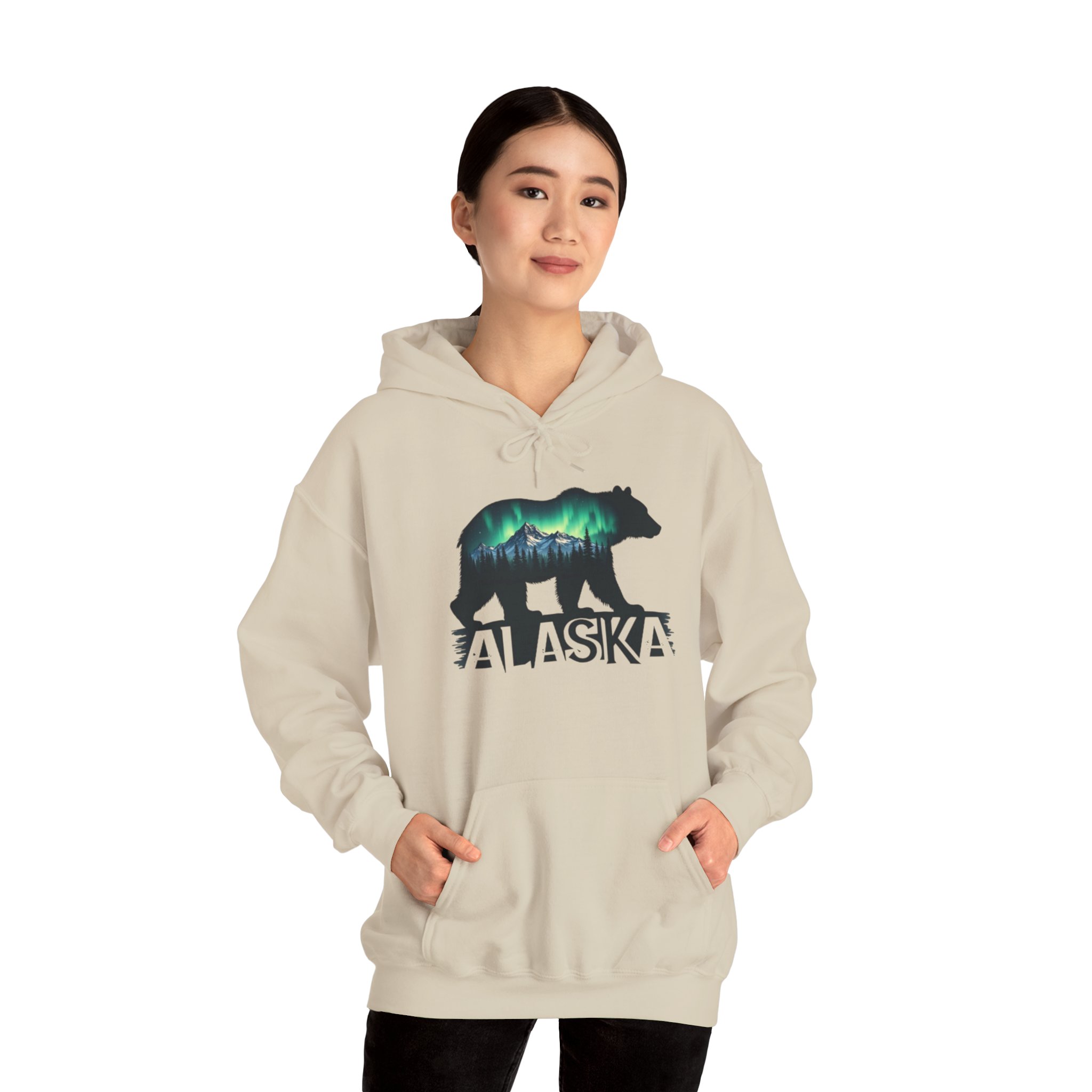 Stay warm and cozy in this beautiful Alaska hoodie featuring a bear and the northern lights. Perfect for nature lovers and anyone who enjoys unique and eye-catching designs. This hoodie is ideal for chilly weather and outdoor adventures, and it makes a great gift for Christmas, birthdays, or any special occasion.