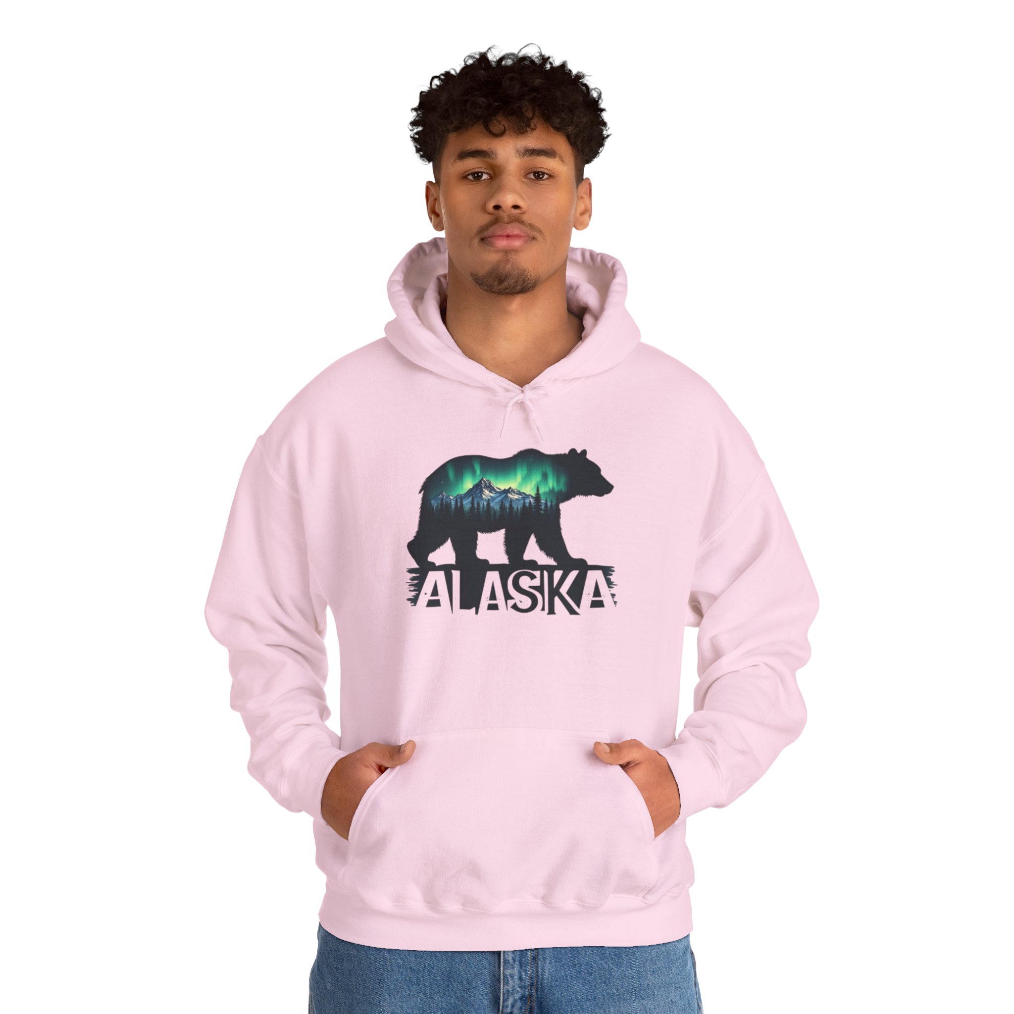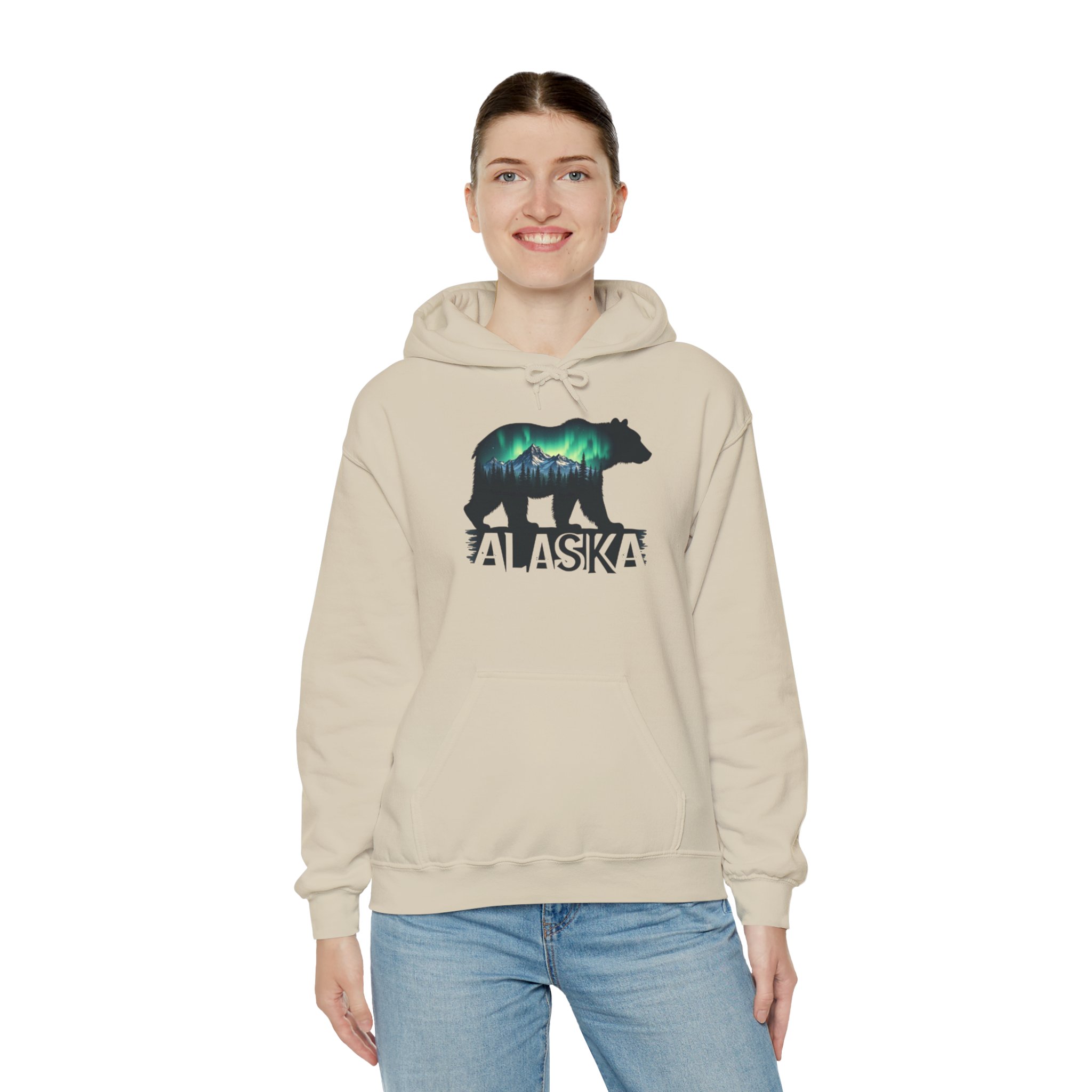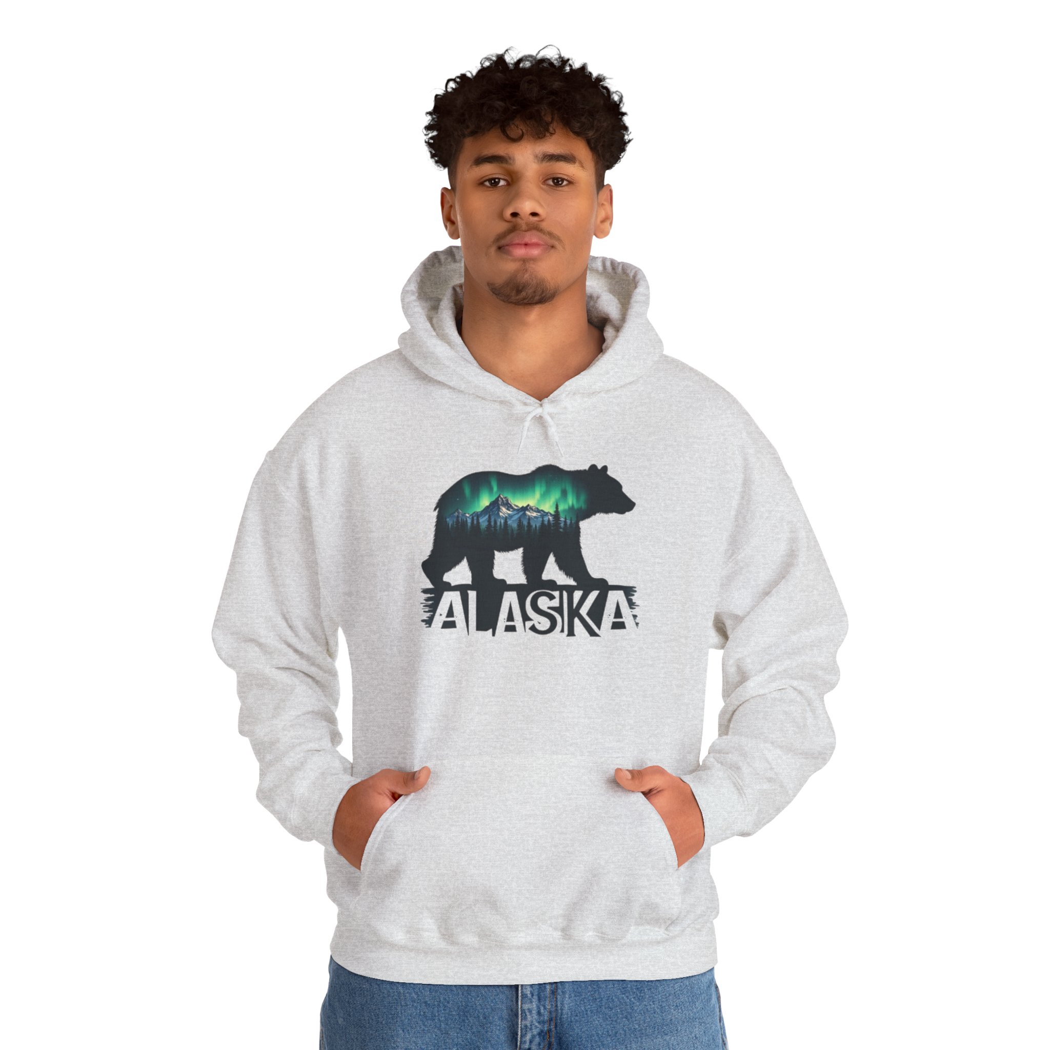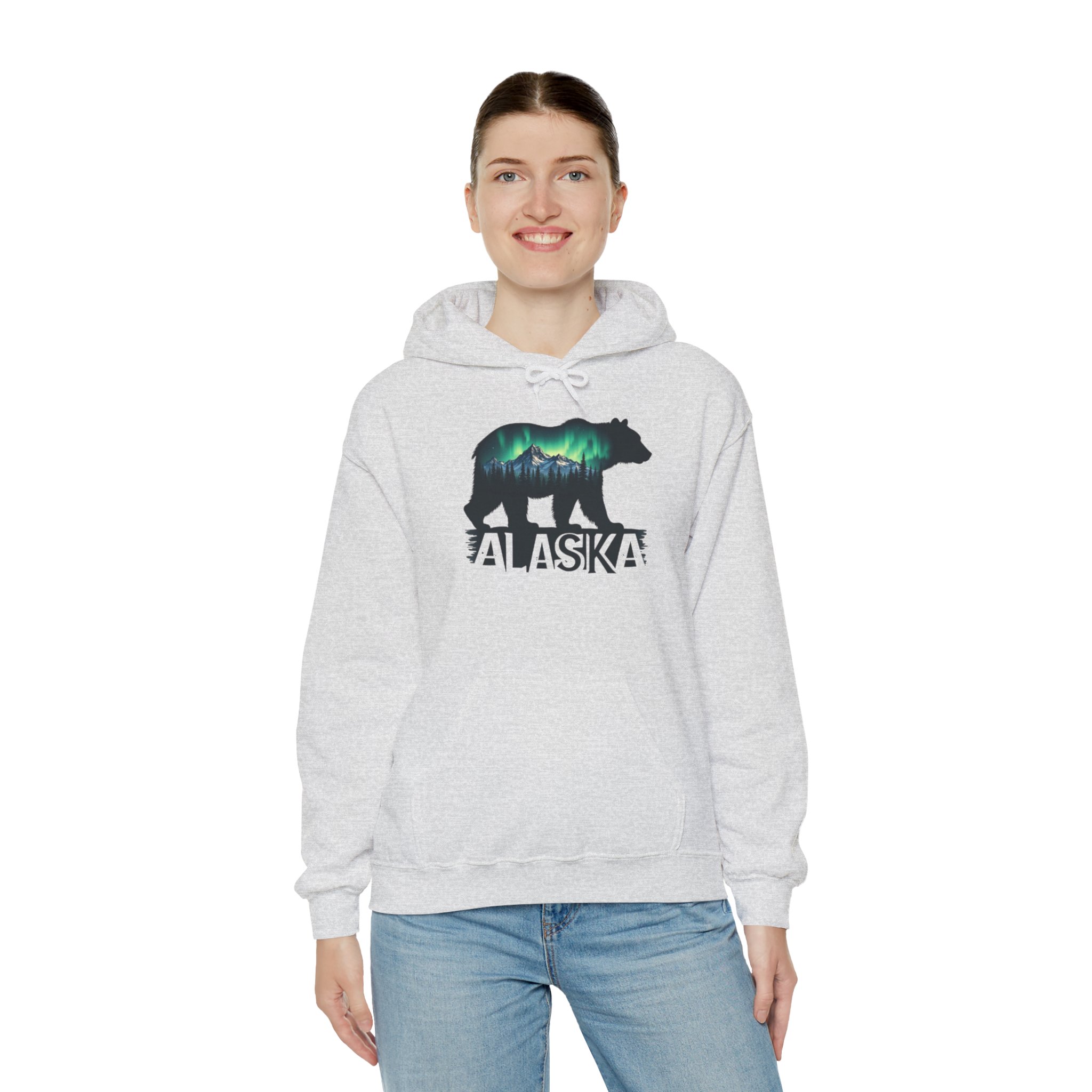 Alaska Bear Northern Lights Hoodie, Unisex Sweatshirt for Nature Lovers, Wilderness Gift, Wildlife Apparel, Outdoor Adventure Wear, Alaskan