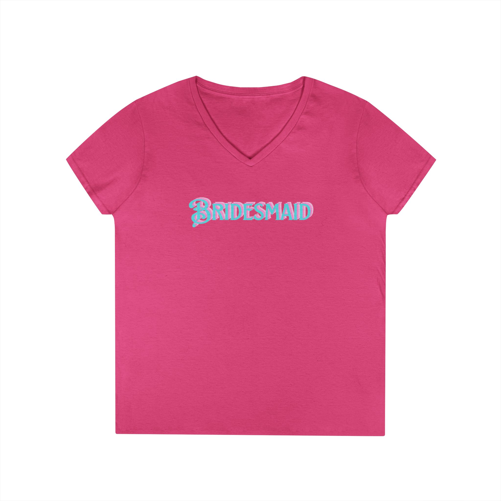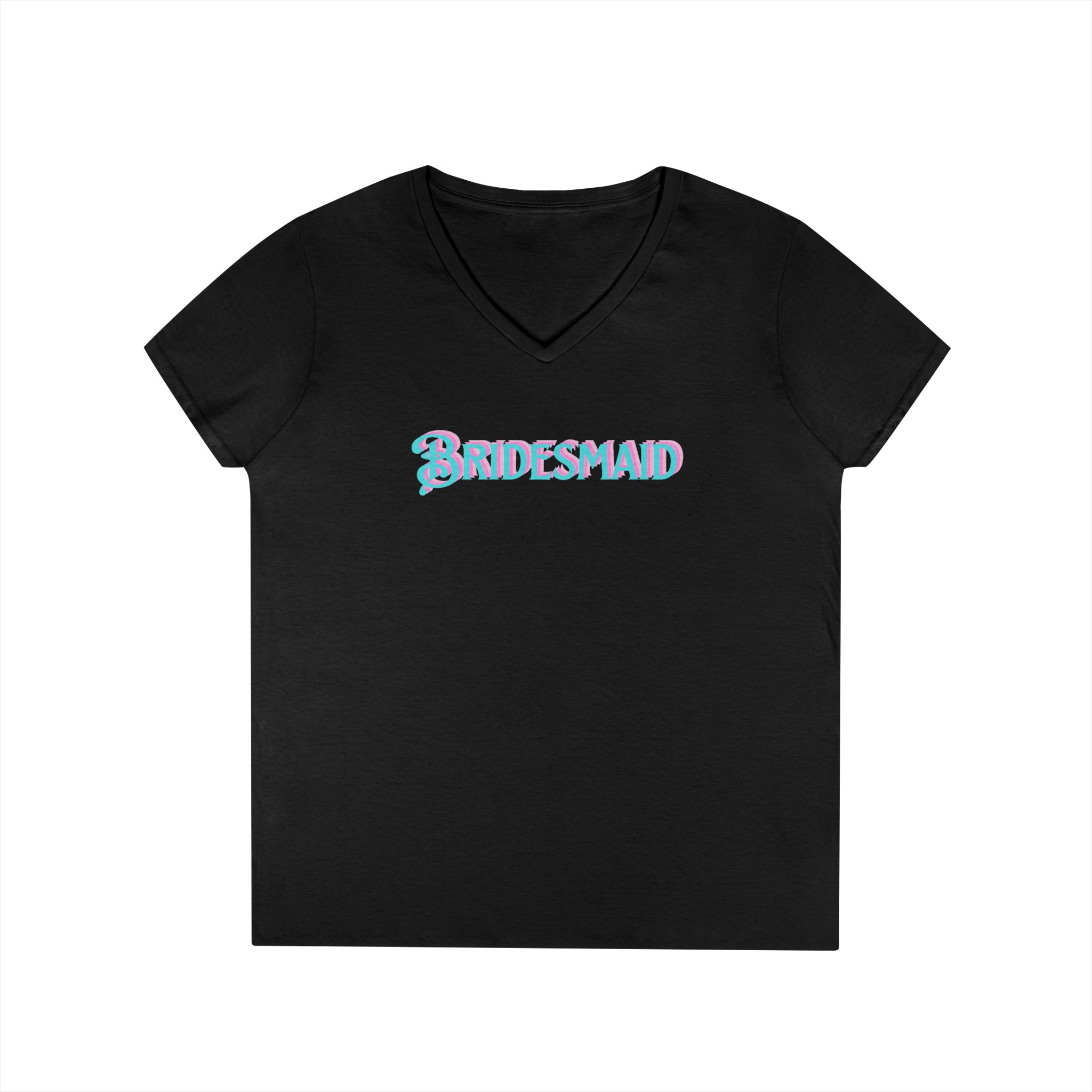 This “Barbie-themed”, vibrant Bridesmaid V-Neck T-Shirt is perfect for bachelorette parties and bridal showers. Designed for the bride and bridal party, this tee gives off a fun and celebratory vibe, making it a must-have for the bride’s special events and festivities.