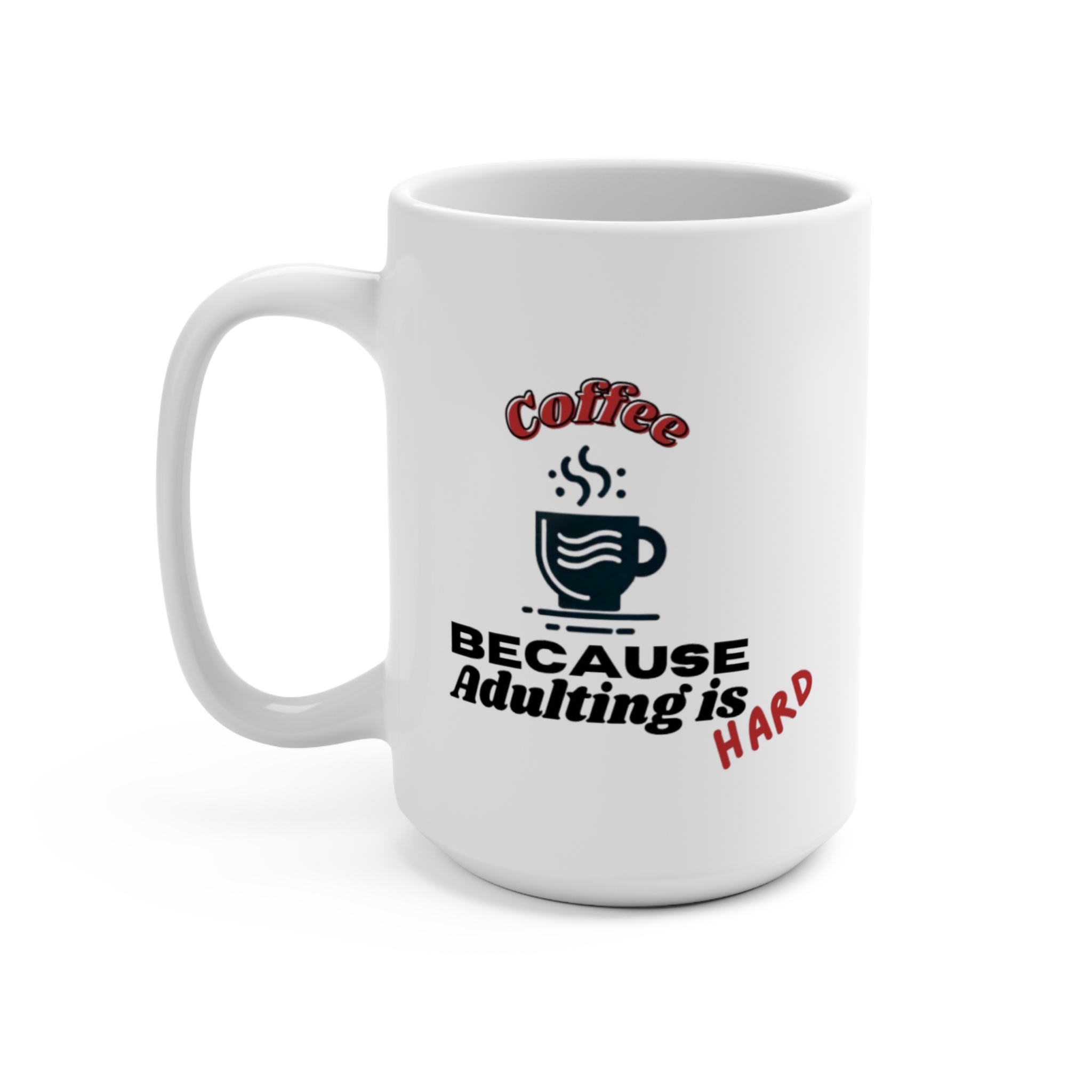 Brighten your mornings (and maybe your mood) with this 15 oz white ceramic mug, designed for coffee lovers who understand that adulting isn’t easy. Featuring the cheeky and relatable phrase “Coffee…because adulting is hard!”, this mug is perfect for your daily dose of caffeine, whether you’re starting your day or powering through the afternoon.