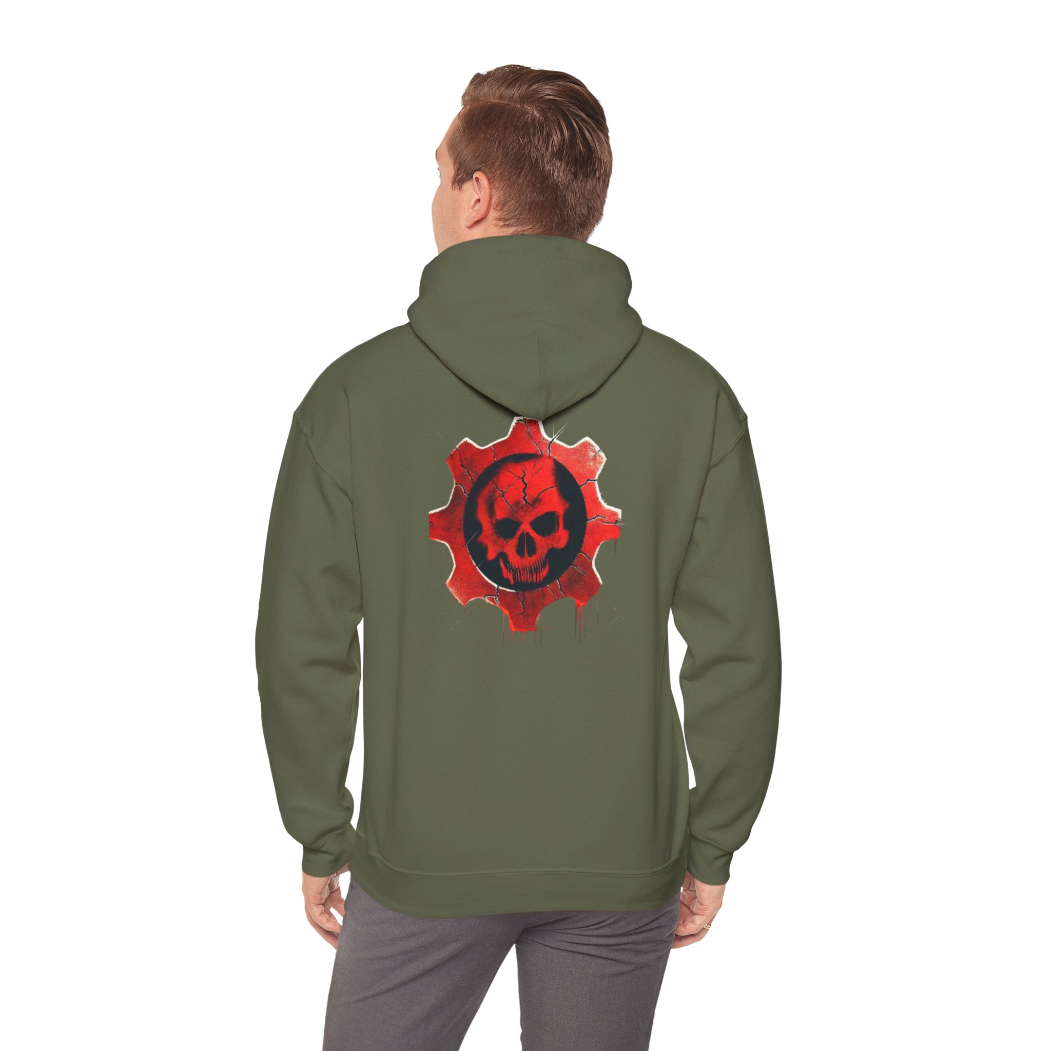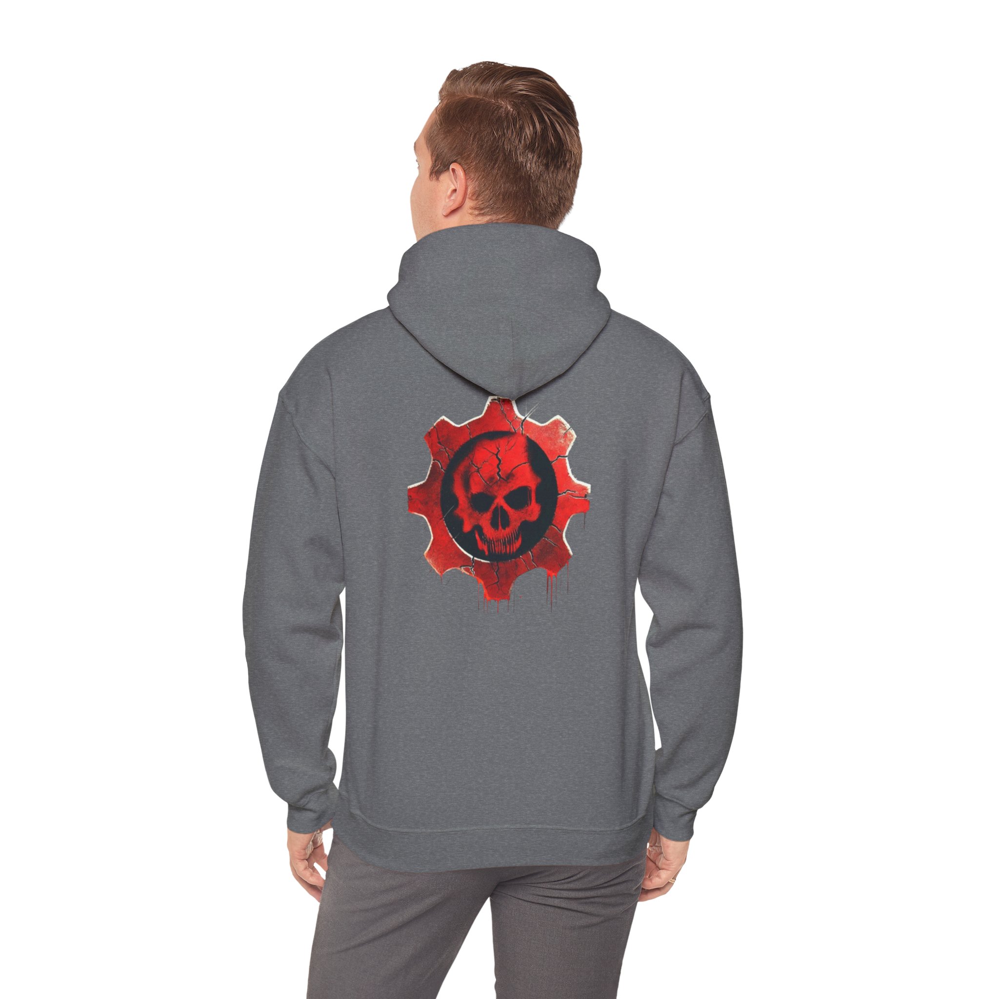 Stay cozy and bold with this unisex heavy blend hoodie featuring a striking Crimson Omen-inspired design. The iconic crimson skull, surrounded by a battle-scarred gear, pops with intense detail and rugged textures, making it the perfect statement piece for gamers and fans of gritty, edgy art. Whether you’re gearing up for a gaming marathon or braving a chilly day, this hoodie combines style, comfort, and attitude.
