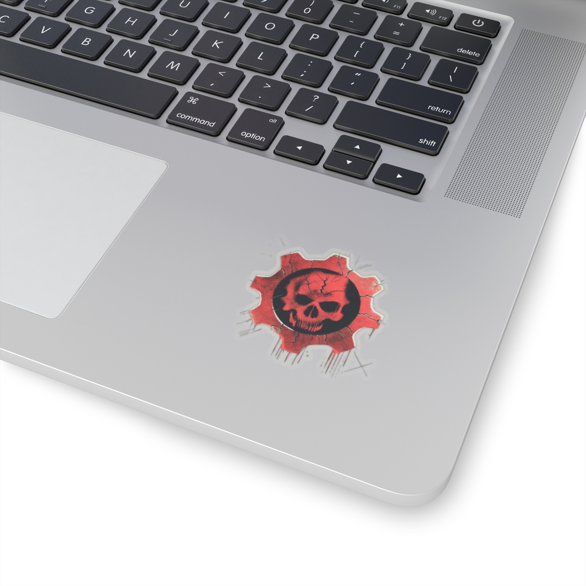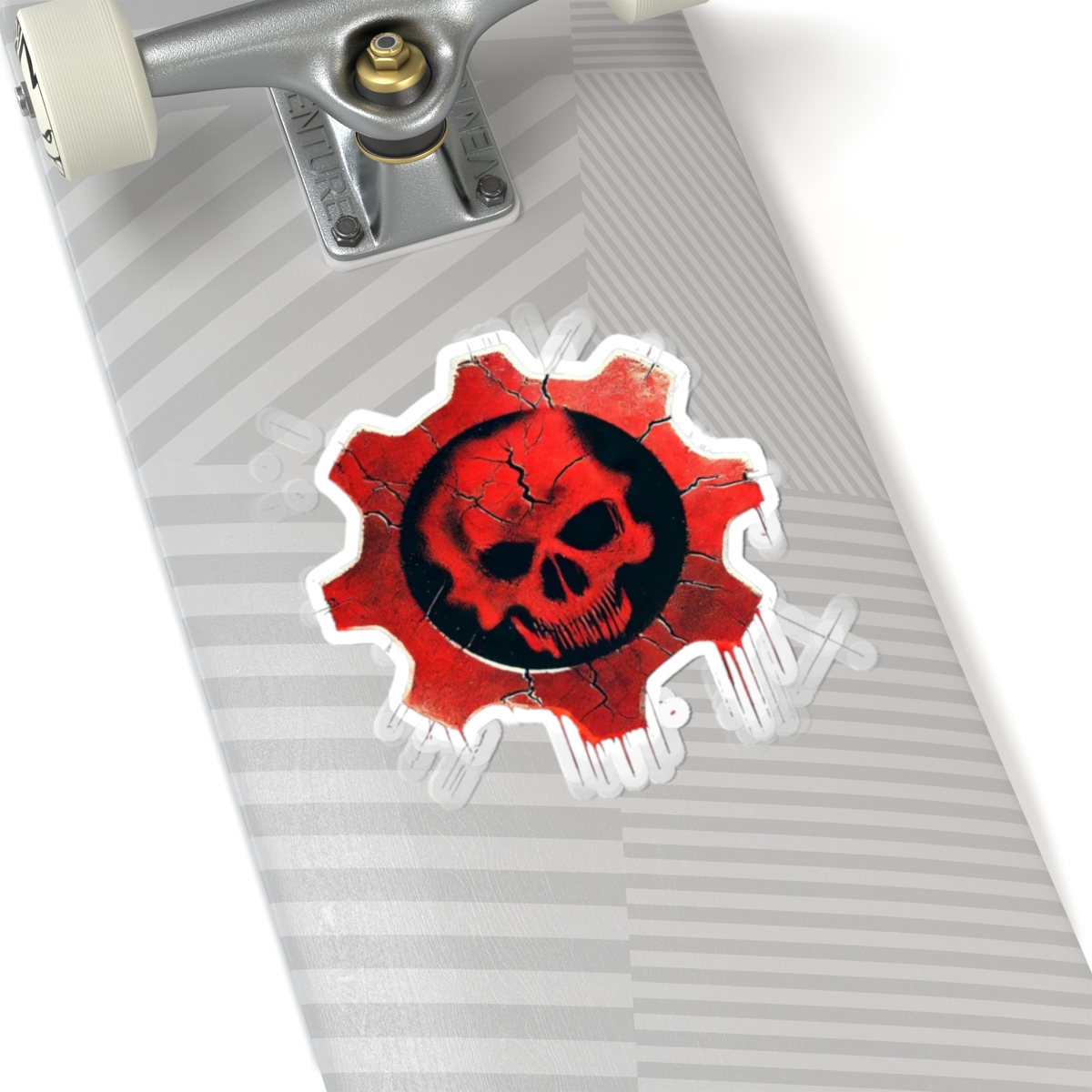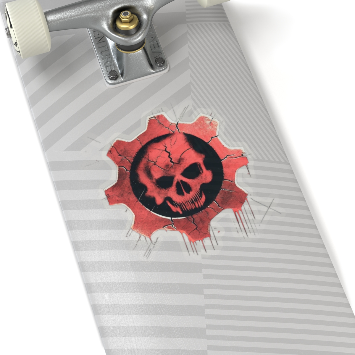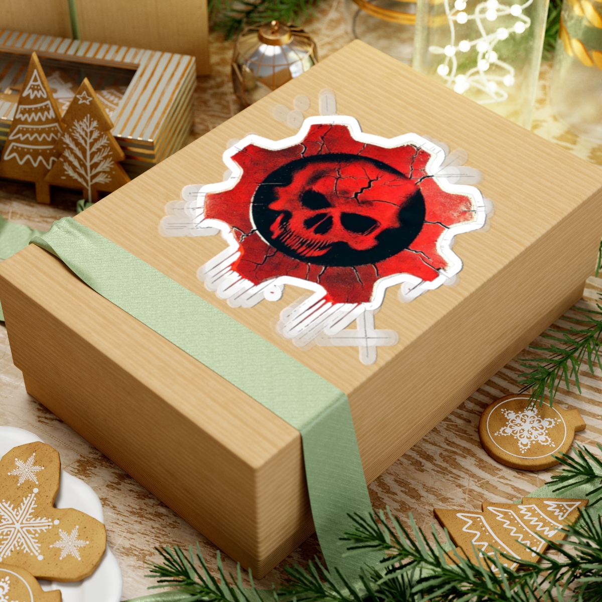 Bring a fierce, rugged edge to your indoor décor with these high-quality vinyl stickers featuring a bold crimson skull embedded in a cracked and scarred gear. Perfect for gamers, artists, and fans of intense visuals, this design combines vivid red and black tones with striking battle-worn textures. Available in white or transparent options, these glossy stickers are cut with precision, leaving the backing intact for easy peeling and smooth application.