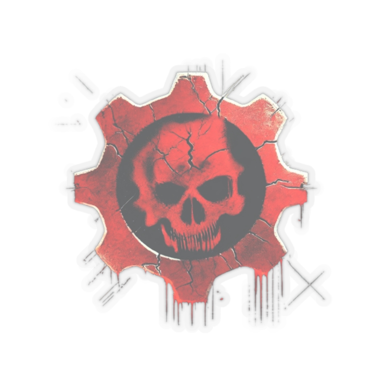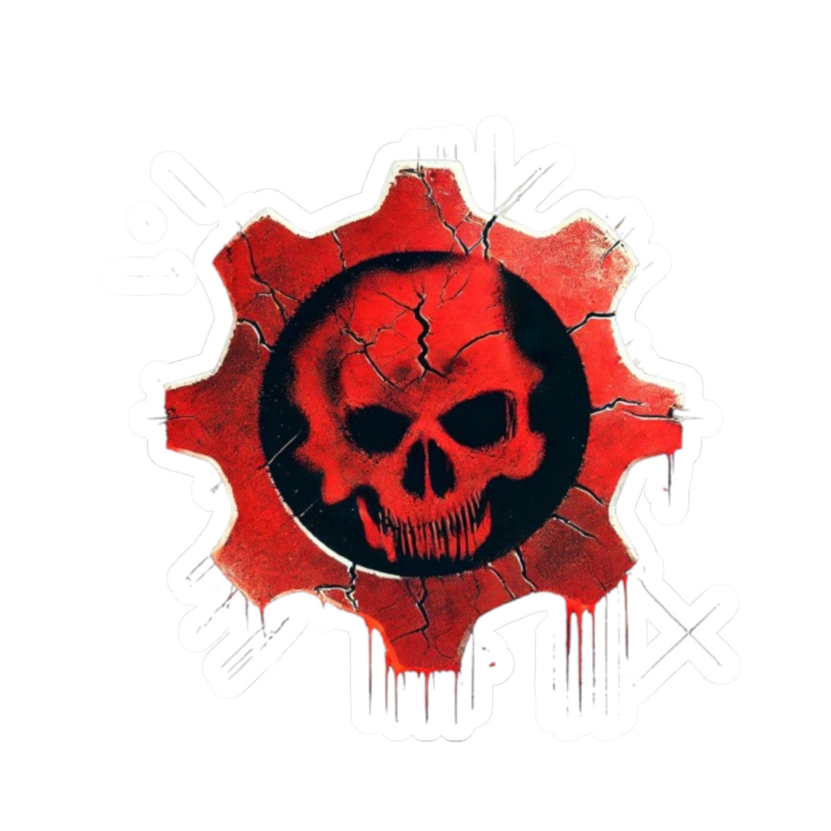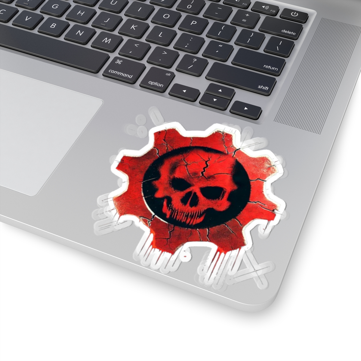 Bring a fierce, rugged edge to your indoor décor with these high-quality vinyl stickers featuring a bold crimson skull embedded in a cracked and scarred gear. Perfect for gamers, artists, and fans of intense visuals, this design combines vivid red and black tones with striking battle-worn textures. Available in white or transparent options, these glossy stickers are cut with precision, leaving the backing intact for easy peeling and smooth application.