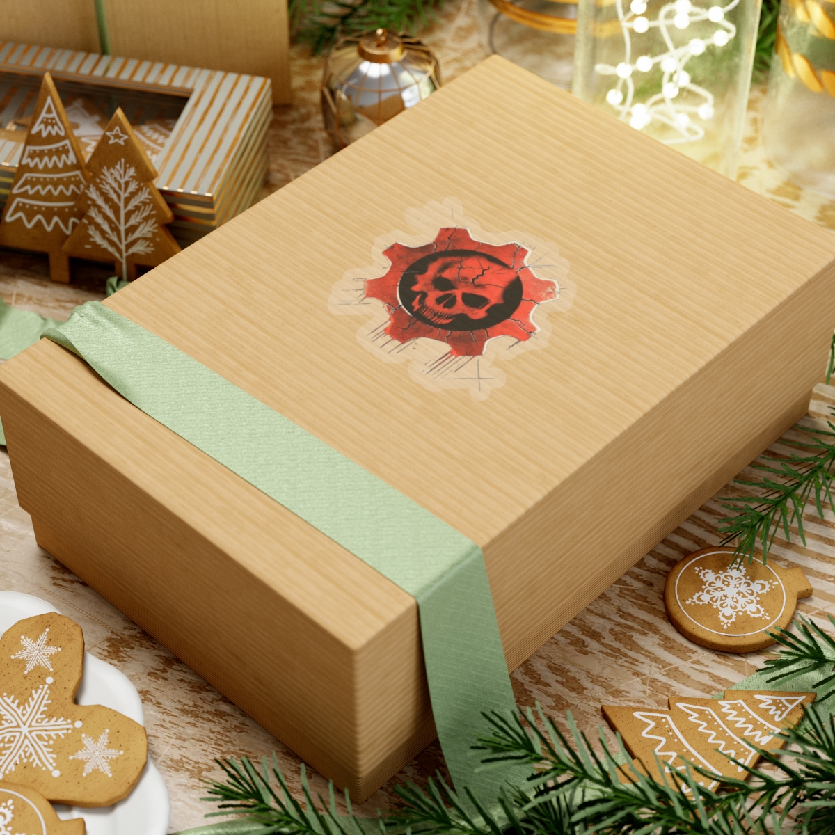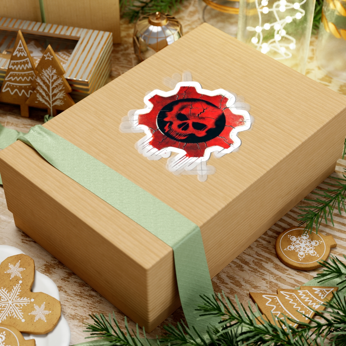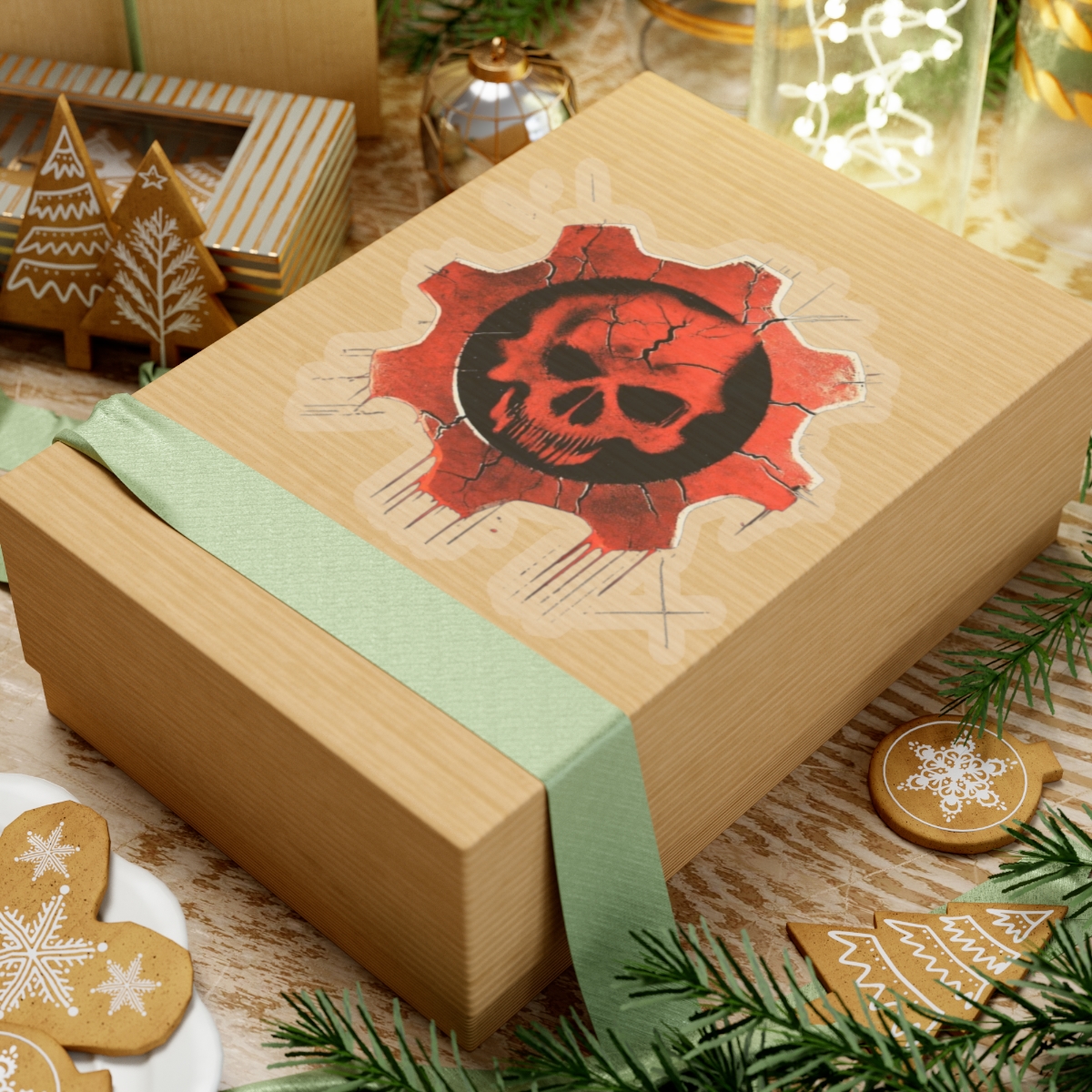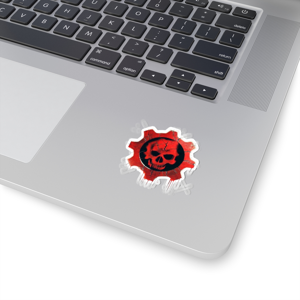 Bring a fierce, rugged edge to your indoor décor with these high-quality vinyl stickers featuring a bold crimson skull embedded in a cracked and scarred gear. Perfect for gamers, artists, and fans of intense visuals, this design combines vivid red and black tones with striking battle-worn textures. Available in white or transparent options, these glossy stickers are cut with precision, leaving the backing intact for easy peeling and smooth application.