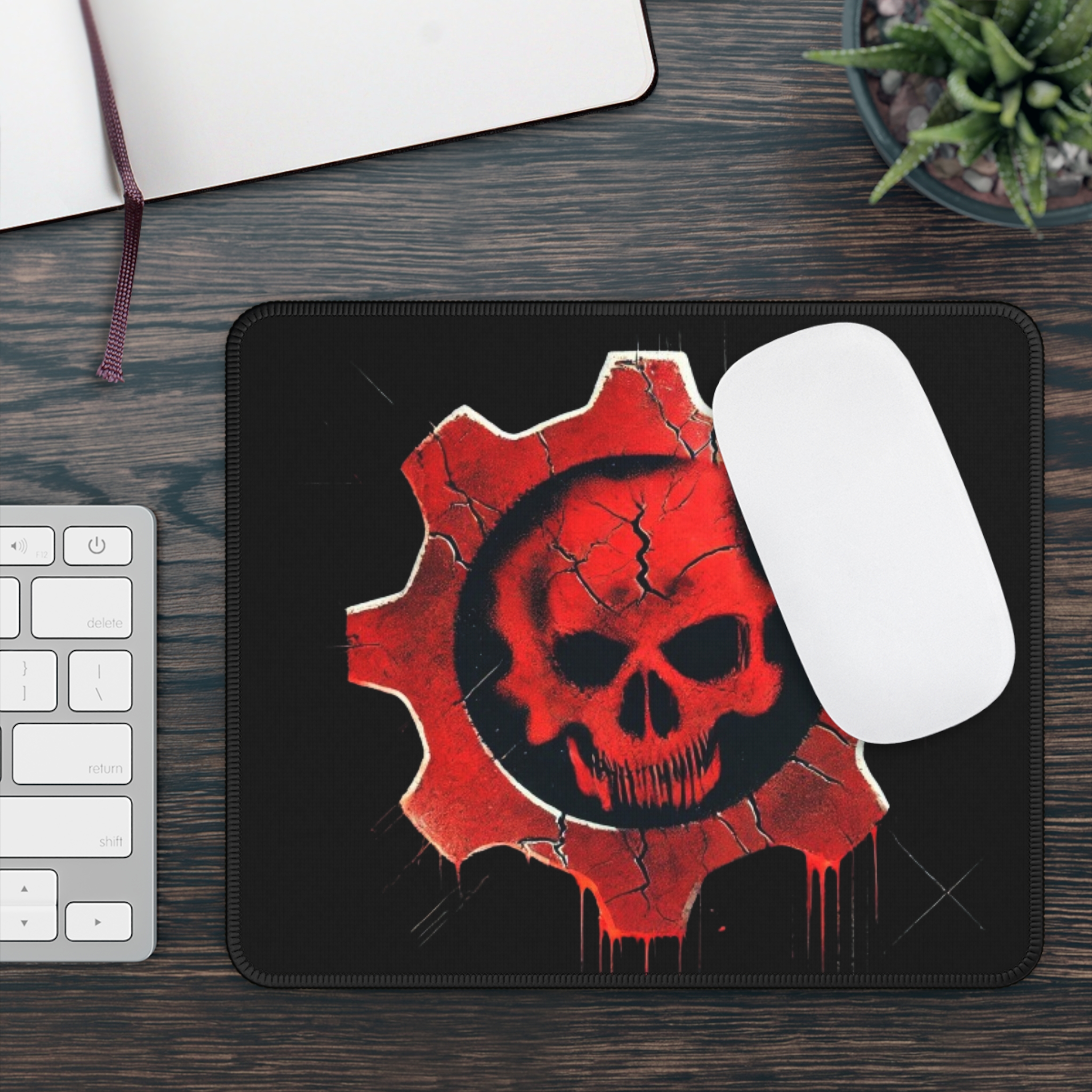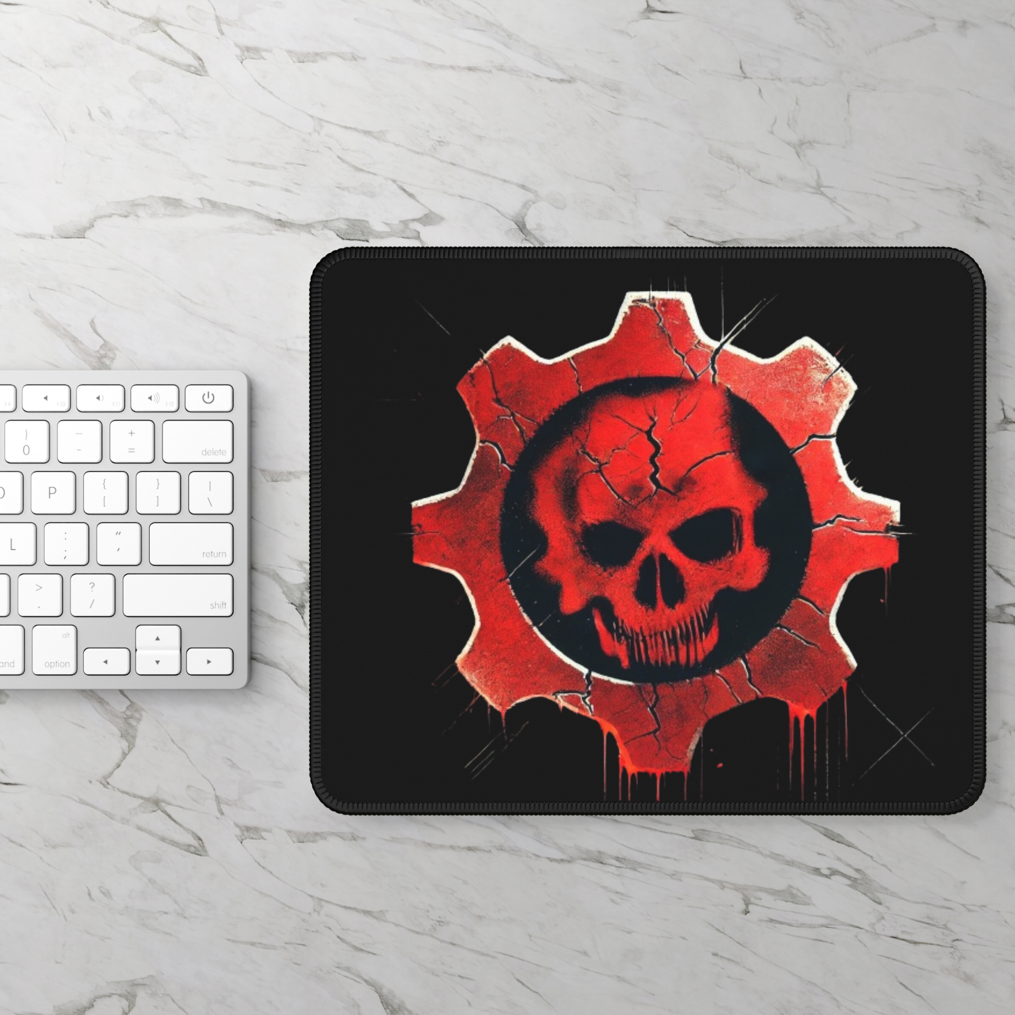 Crimson Skull Gear Mouse Pad Battle-Scarred Gaming Design
