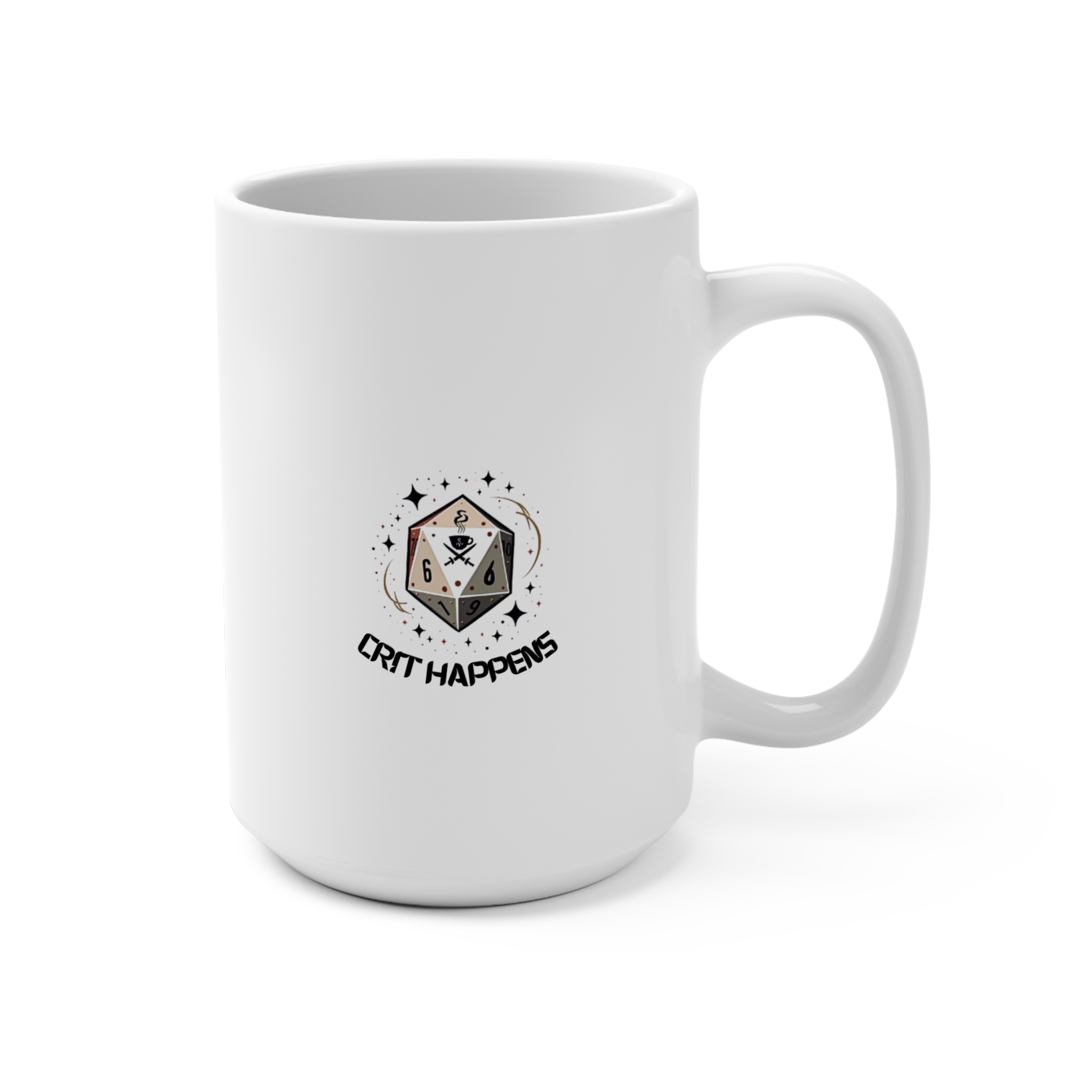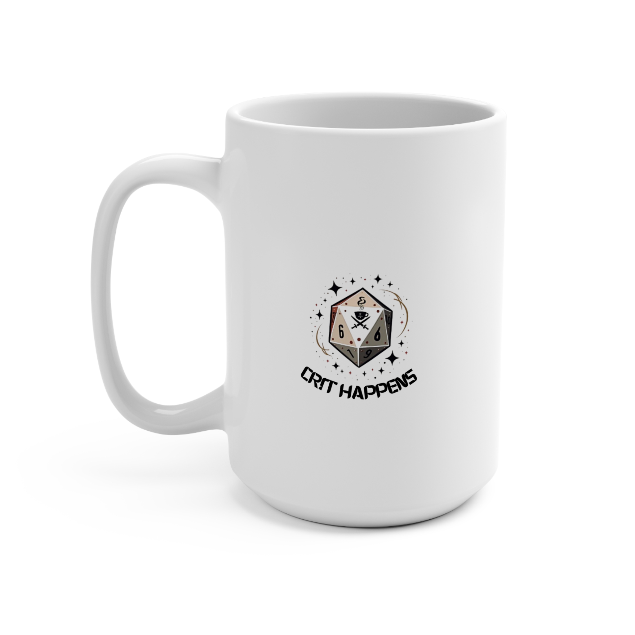 Kick off your morning or late-night gaming session with our “Crit Happens” 15 oz ceramic mug! Featuring a vibrant, stylized d20 design and the humorous phrase “Crit Happens,” this mug is a perfect companion for tabletop RPG fans who love their coffee, tea, or any beverage of choice.