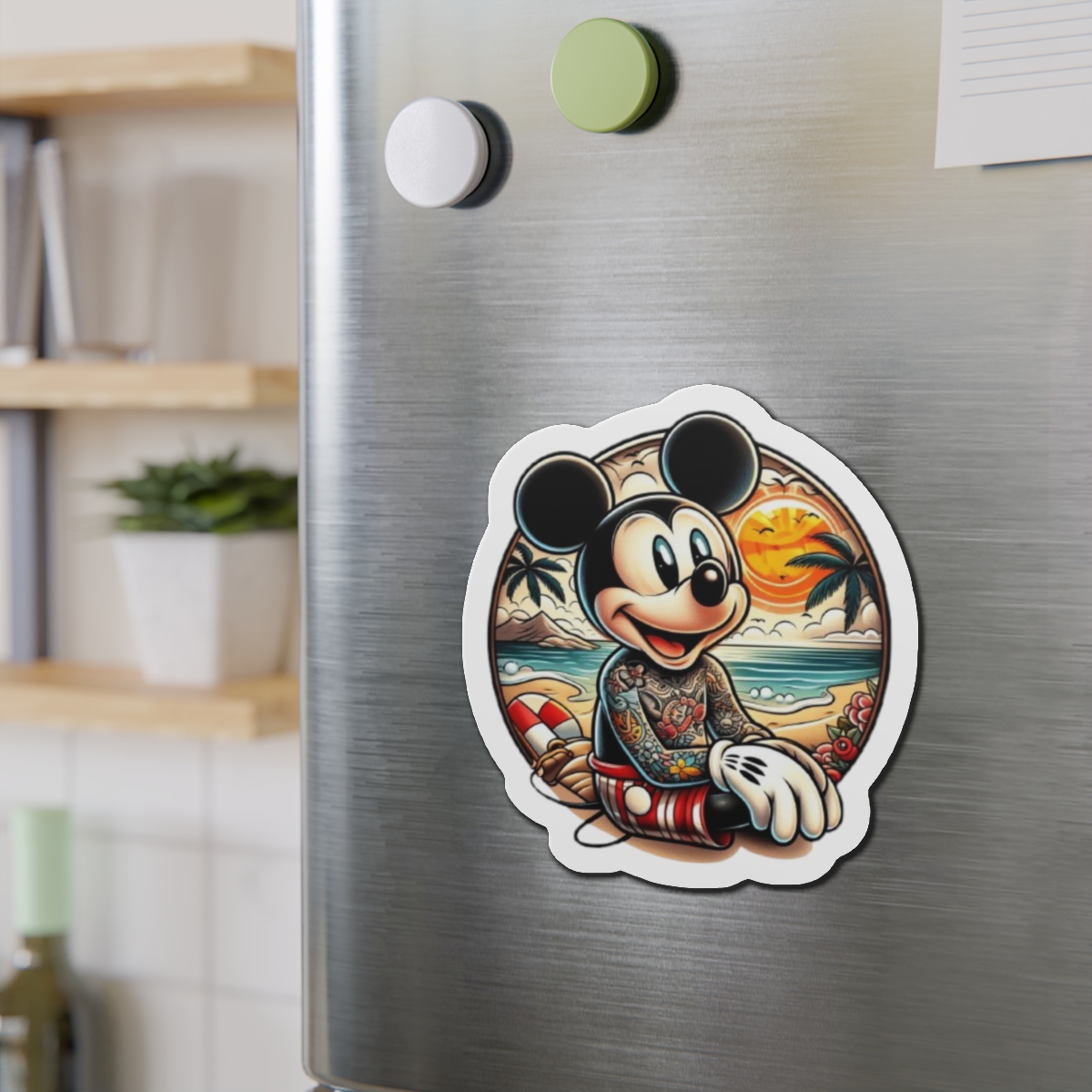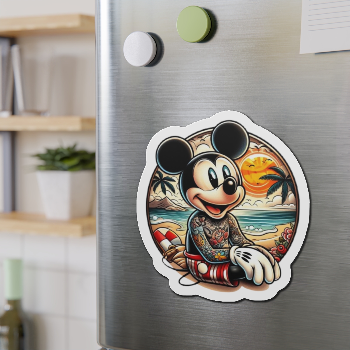 Disney Cruise Door Magnets, Tropical Tattoo Mickey Design, Fun Fridge Magnets, Cute Kitchen Decor, Mickey Mouse Fan Gift,Refrigerator Magnet