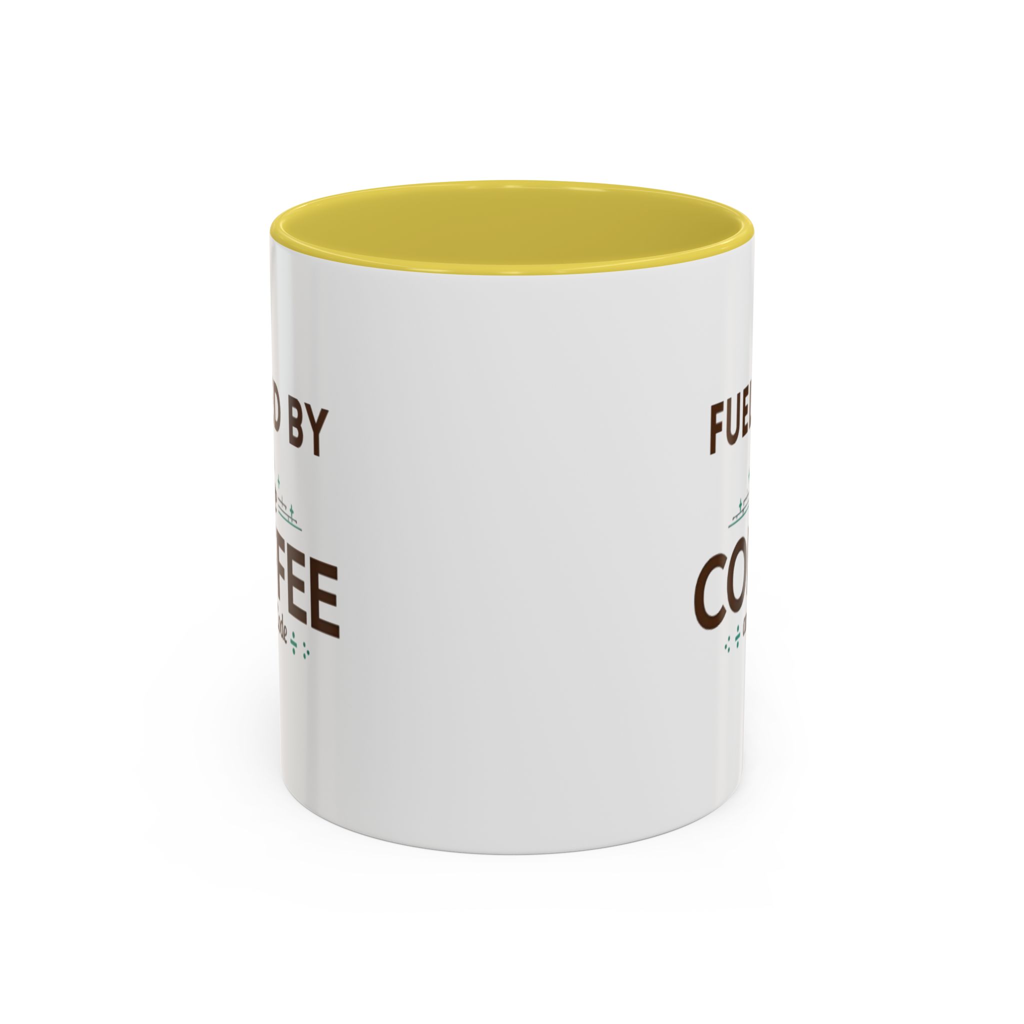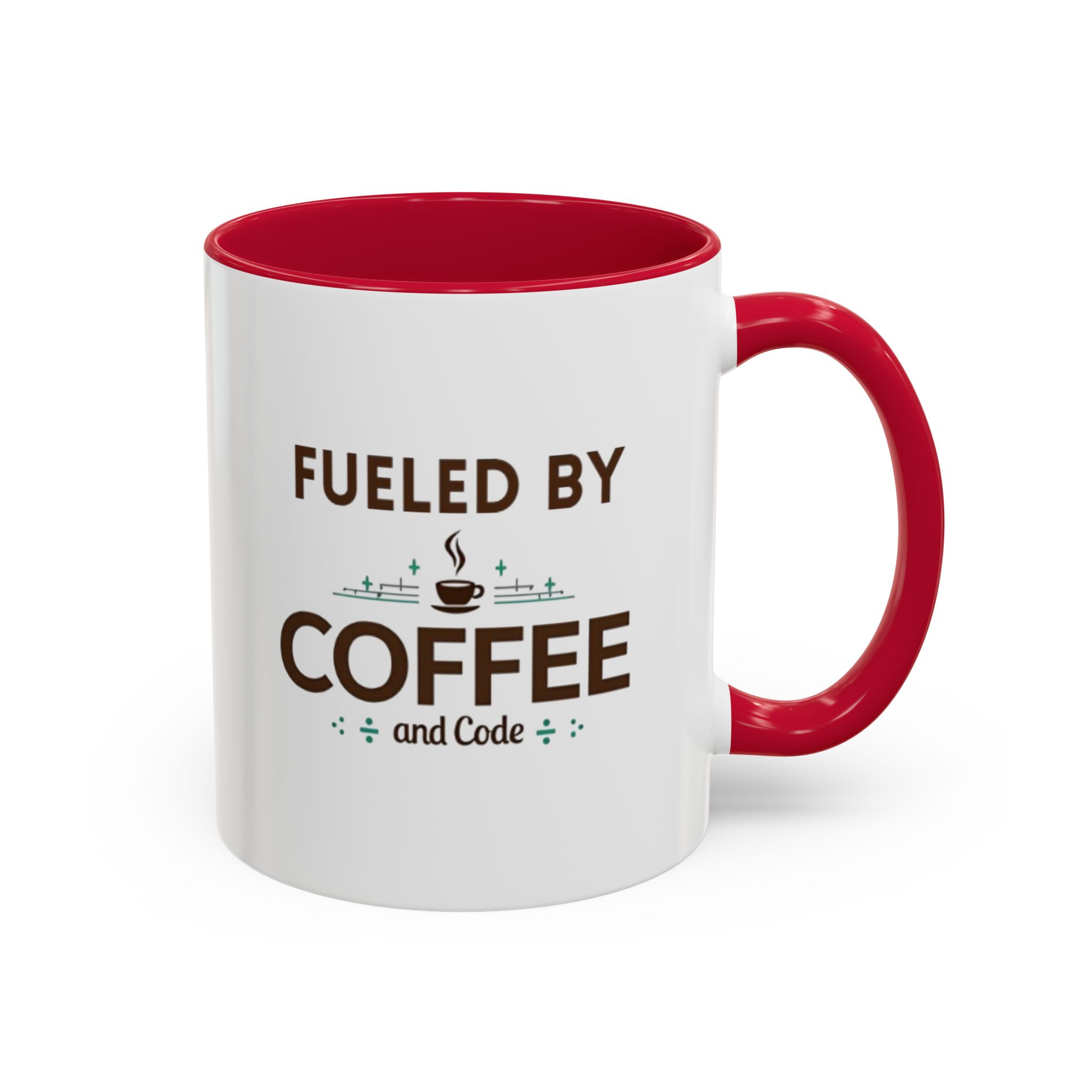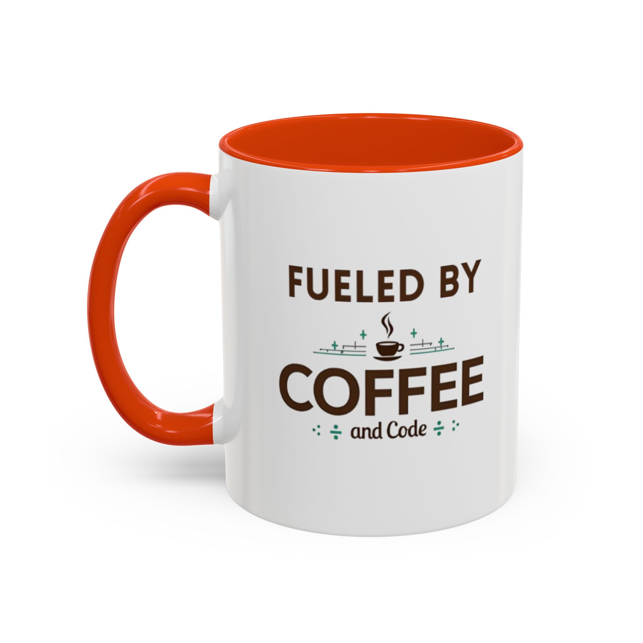 Fueled by Coffee and Code mug, fun colors, programmer humor, funny coffee cup