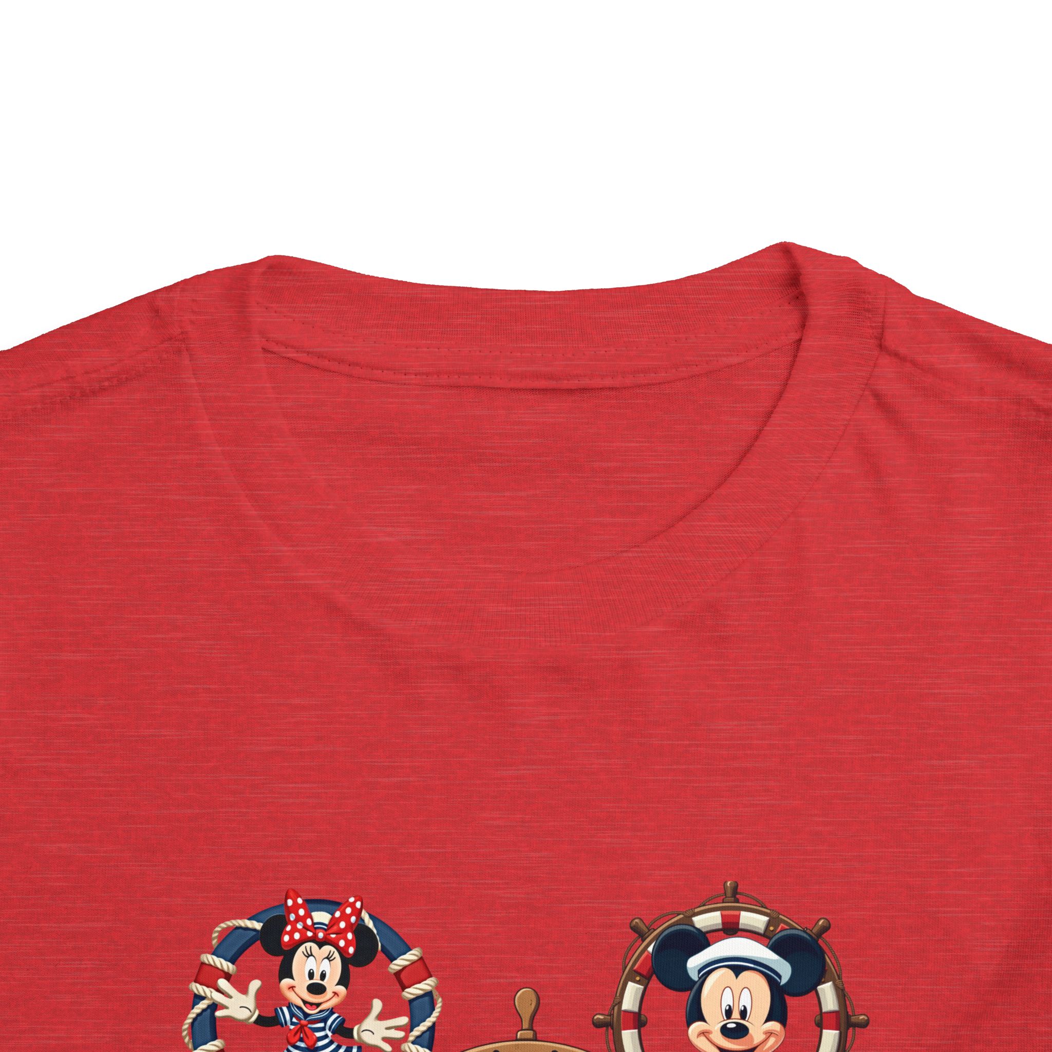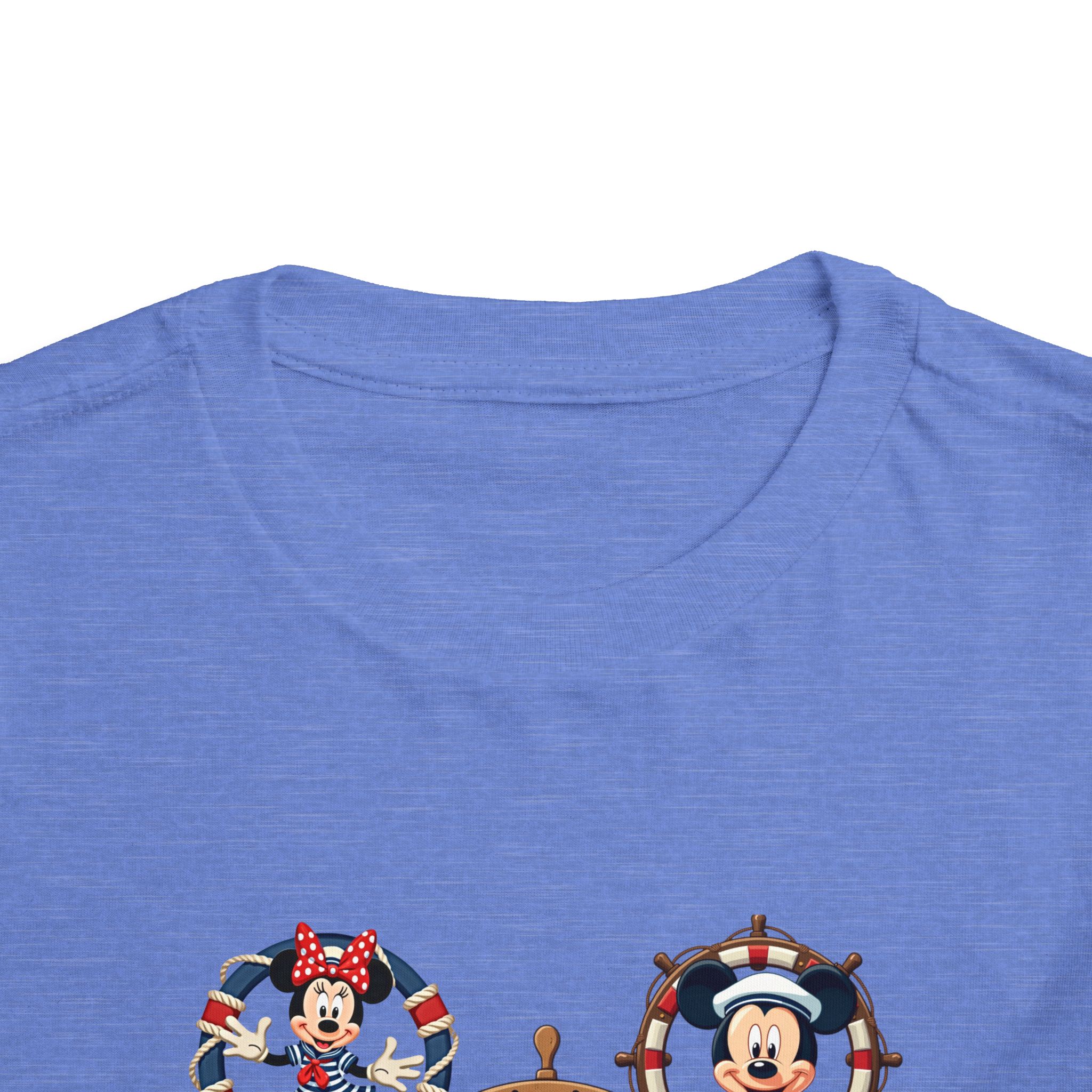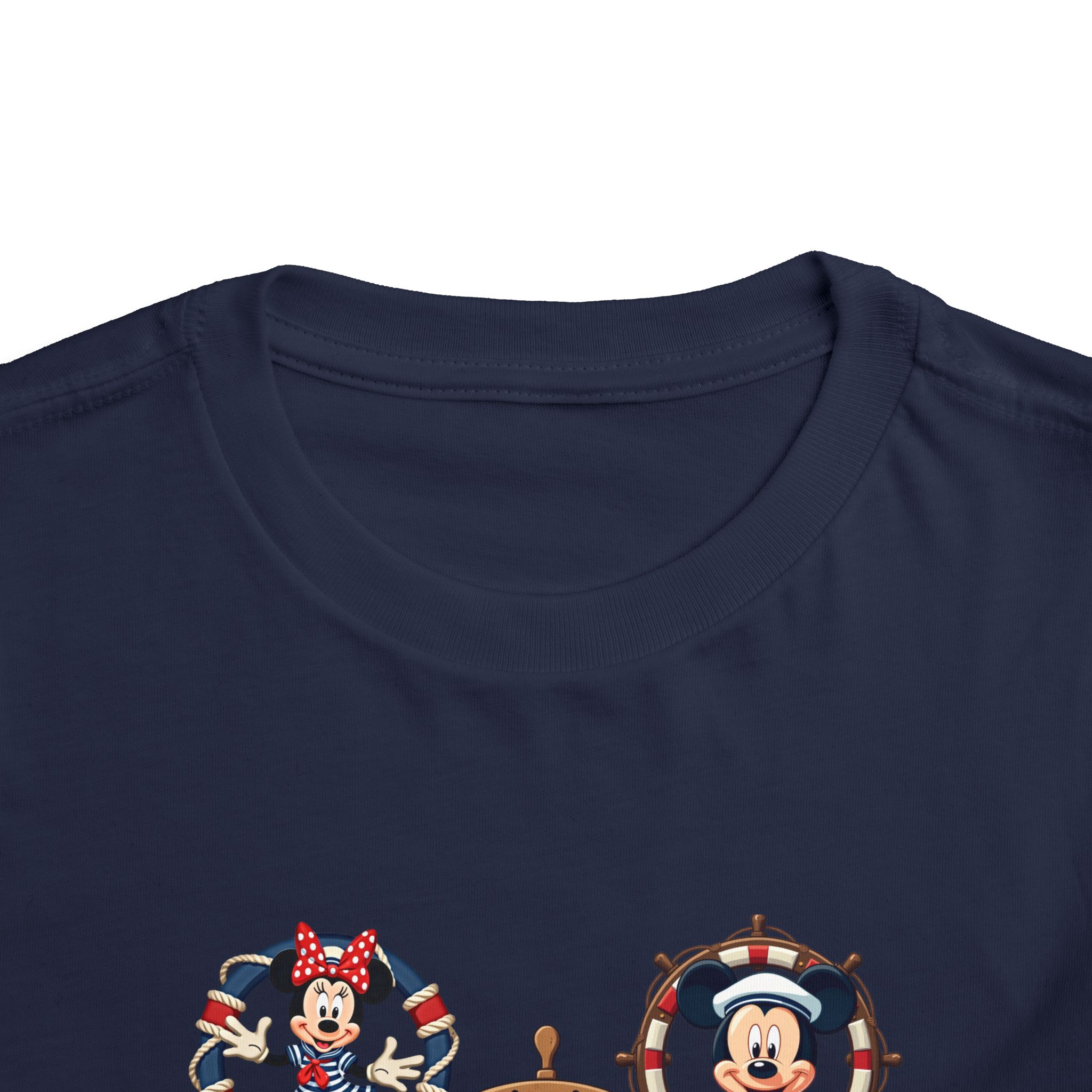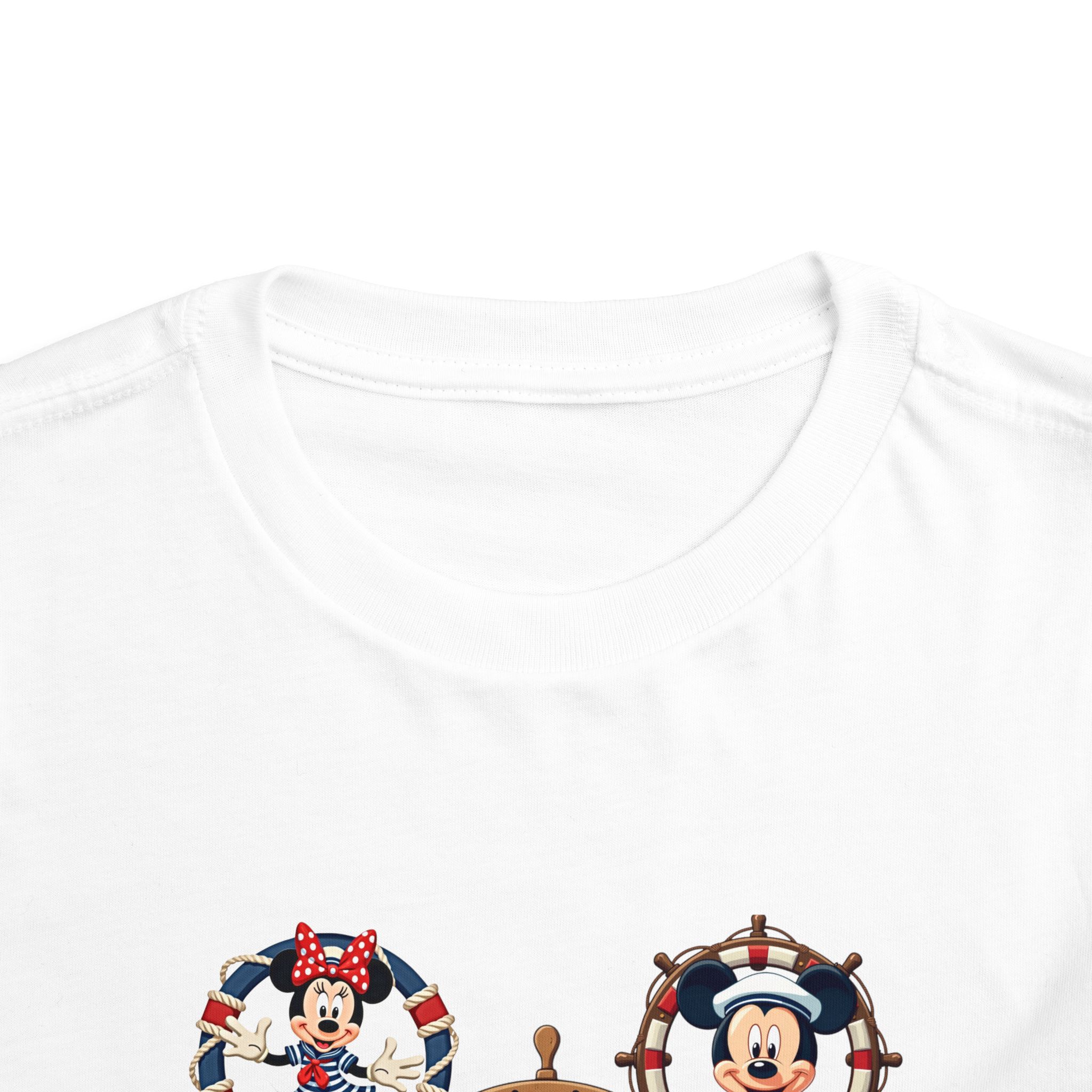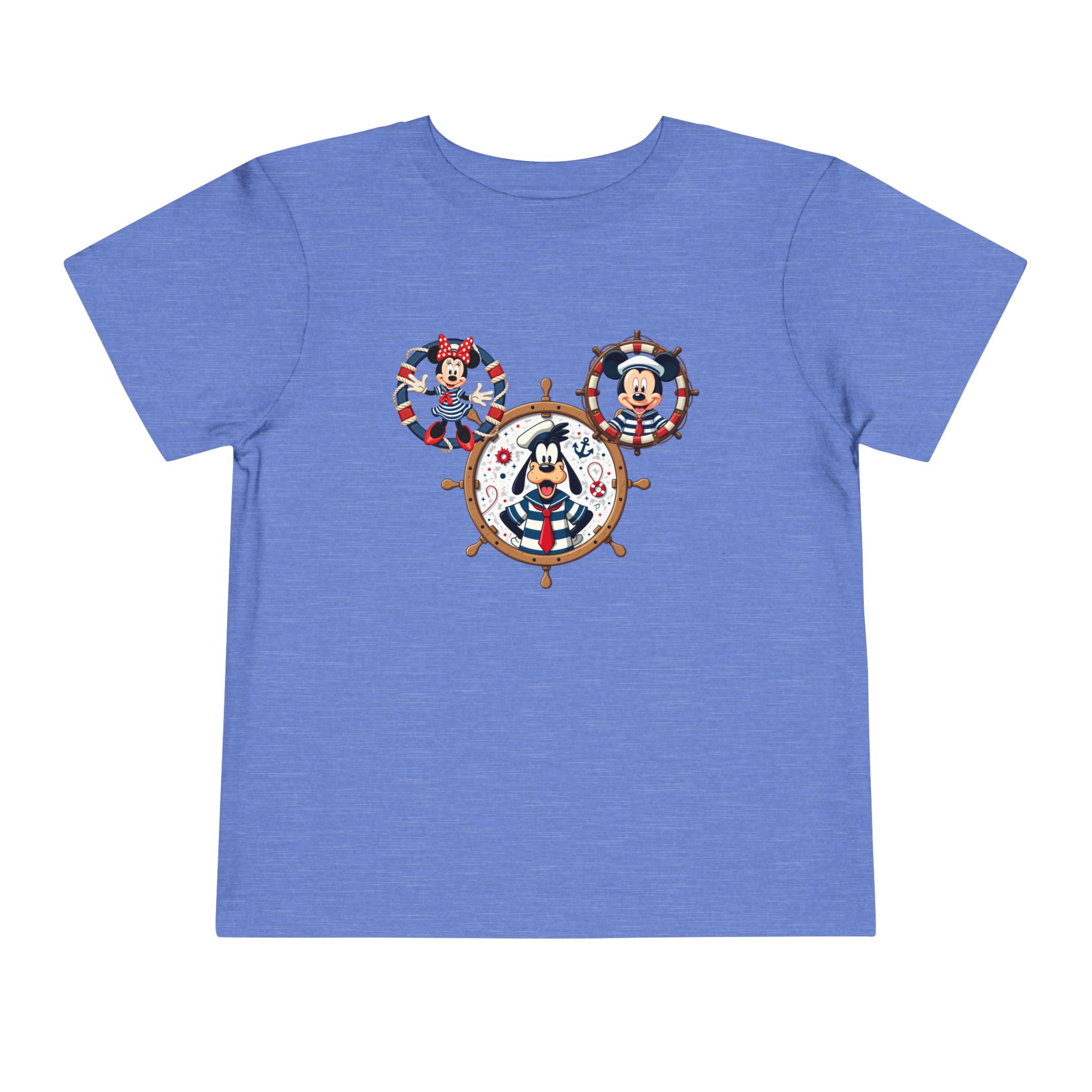 Hidden Mickey Nautical Toddler Tee, perfect for a Disney Cruise, Park visit or for the kid that loves Mickey, Minnie and Goofy. It exudes a playful and fun vibe, making it a great addition to a young Disney fan’s wardrobe. Ideal for toddlers who enjoy Disney characters and themed outings.