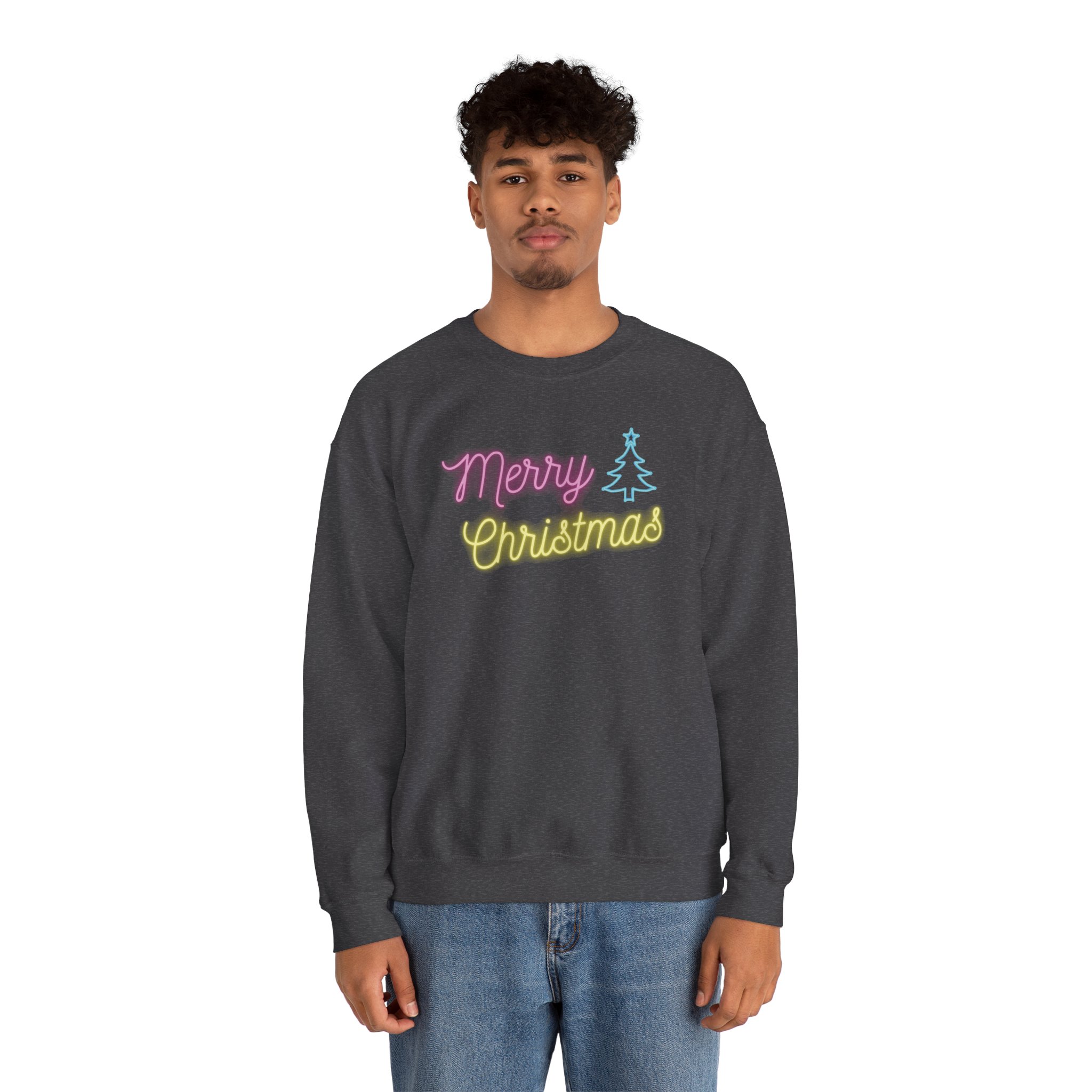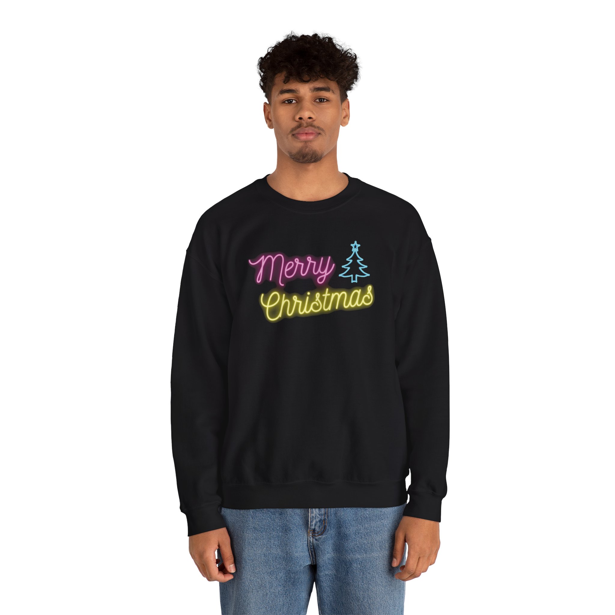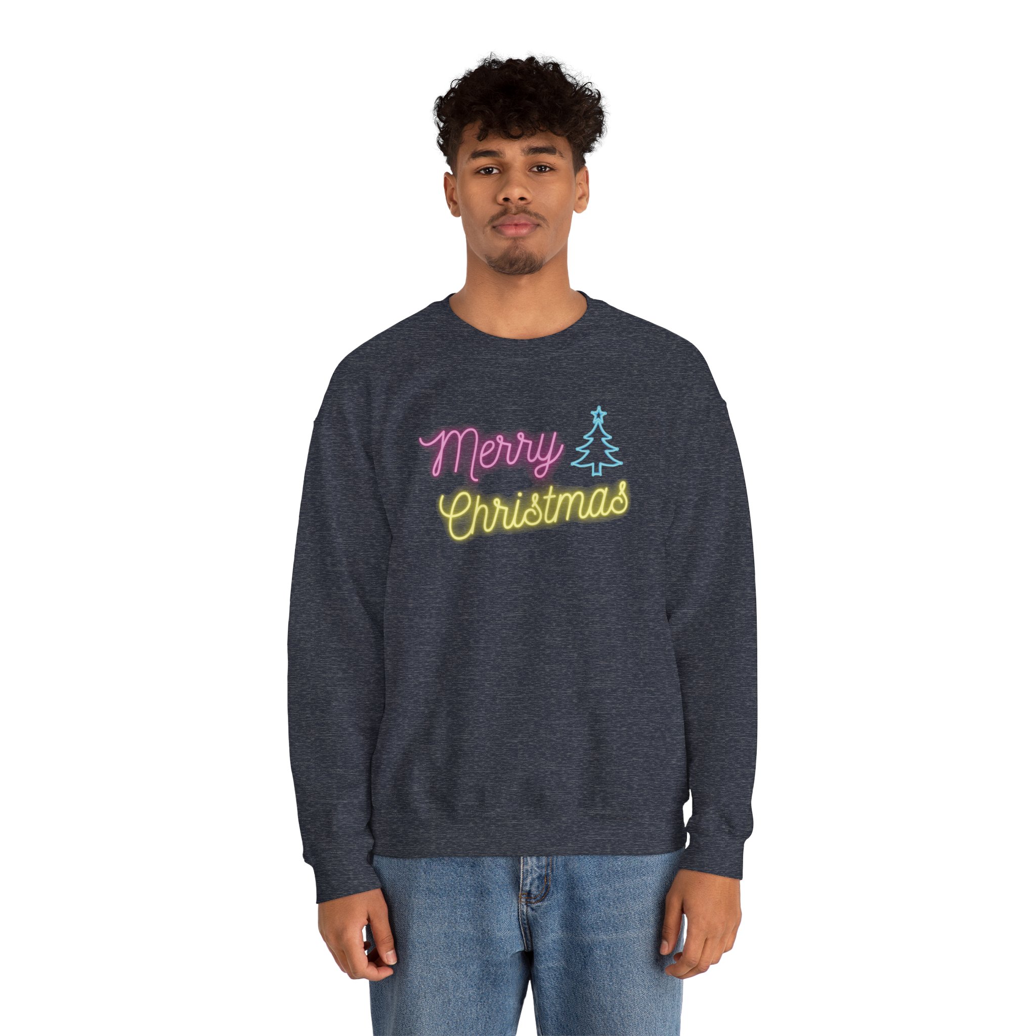 Fun neon sign Merry Christmas sweatshirt, great for the entire Christmas season. This cozy and stylish sweatshirt is perfect for spreading holiday cheer and makes a great gift for friends and family. Suitable for anyone looking to add a festive and fun touch to their winter wardrobe.