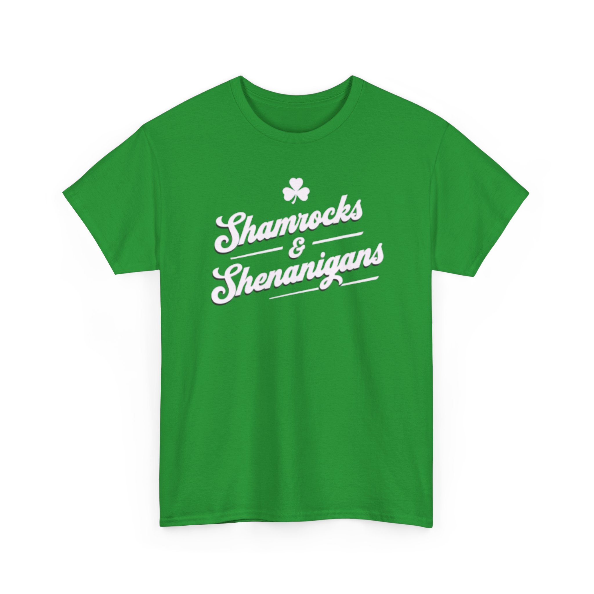 Celebrate St. Patrick’s Day with this Shamrocks and Shenanigans t-shirt, perfect for group bar crawls and festive gatherings. This unisex heavy cotton tee offers a classic fit and crew neckline for year-round comfort and a neat, timeless look.