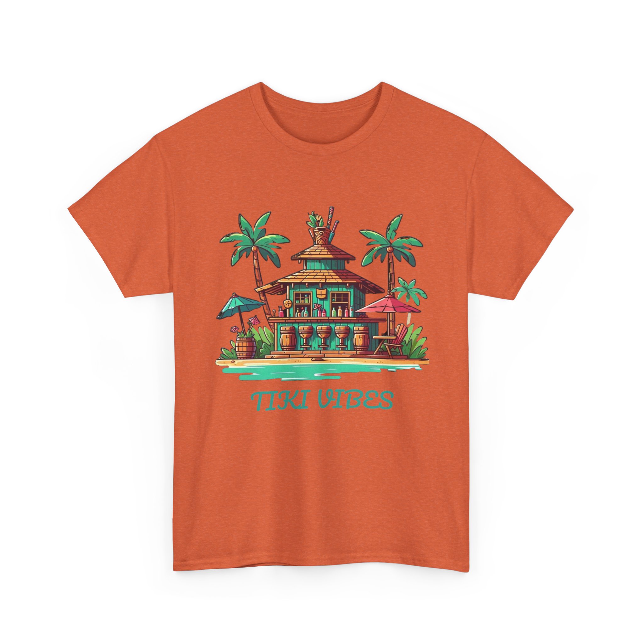 Fun and retro tiki bar design, bring out the fun in the sunshine. This unisex heavy cotton T-shirt is perfect for those who love a laid-back, vintage vibe. Great for beach parties, summer outings, and casual hangouts with friends.